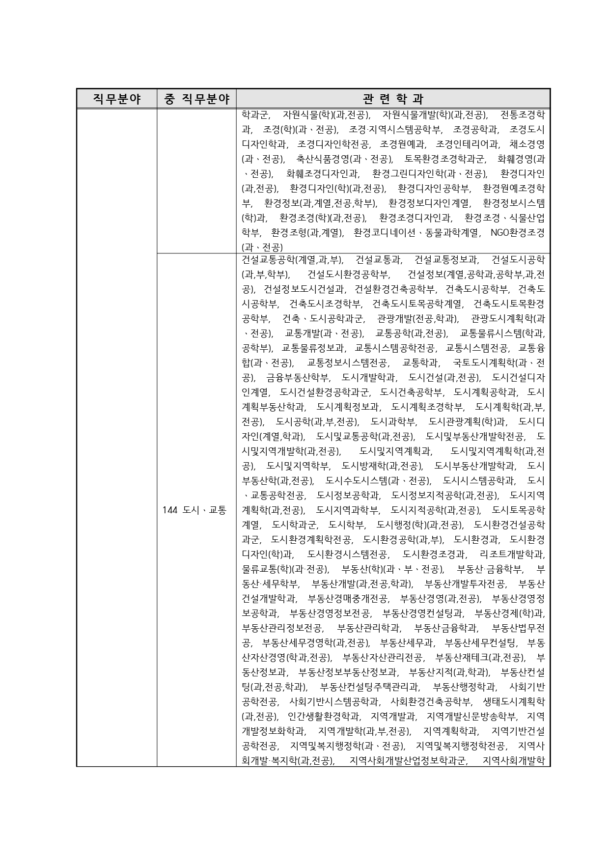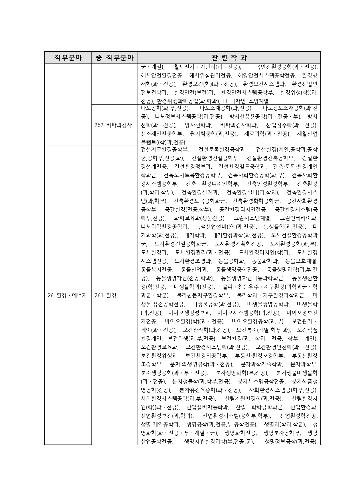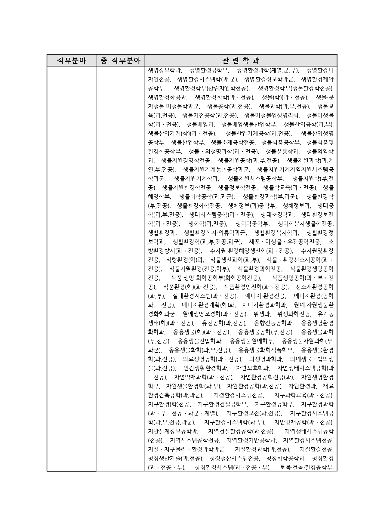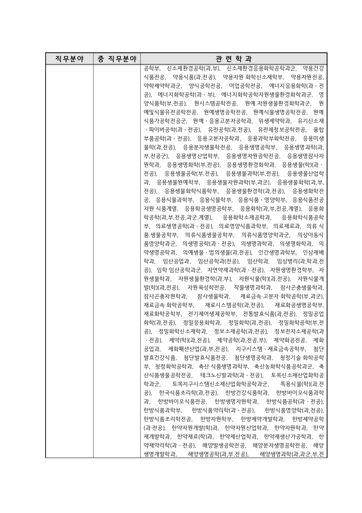 국가기술자격의 종목별 관련학과 안내.