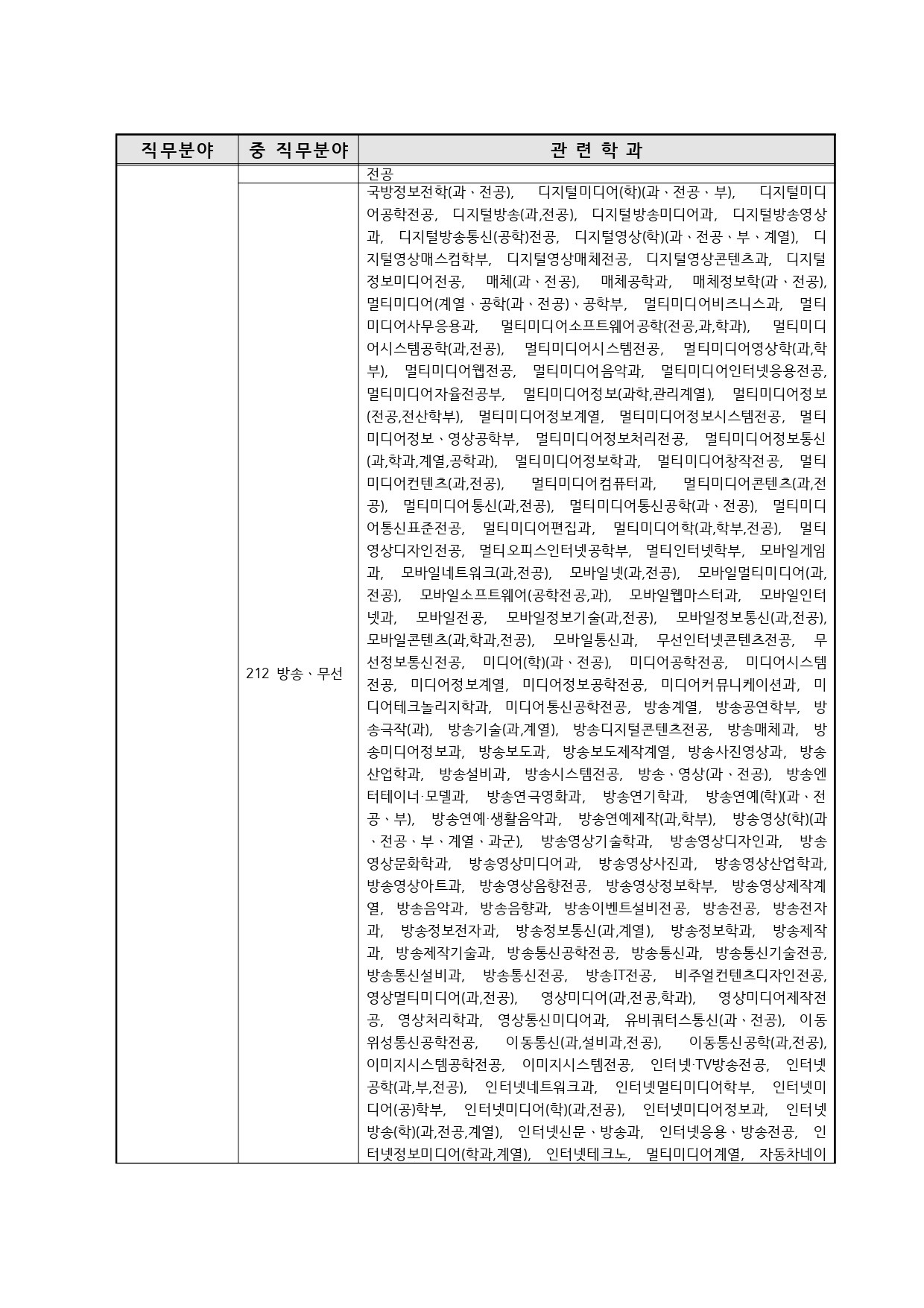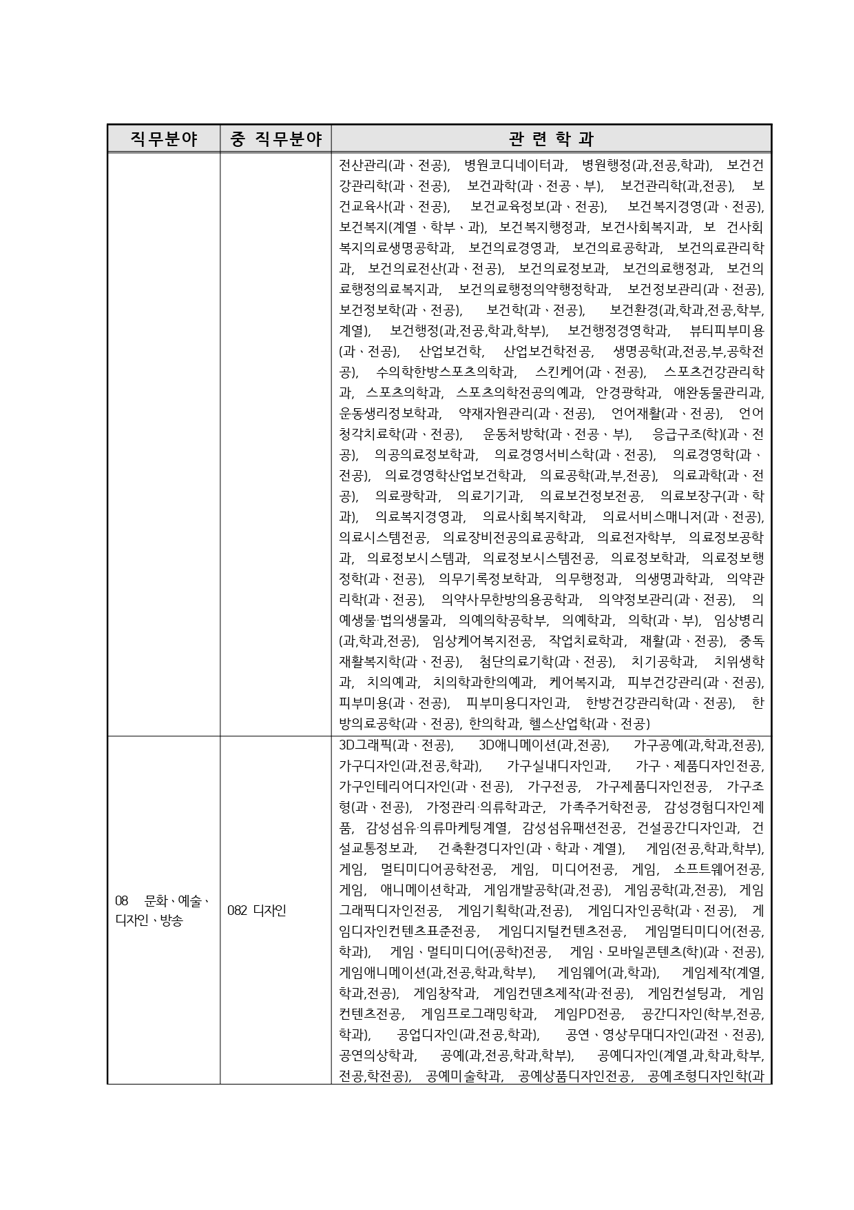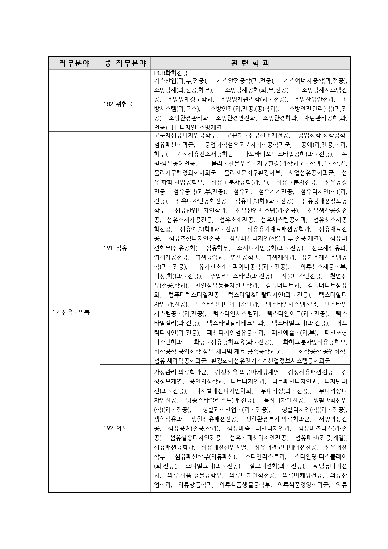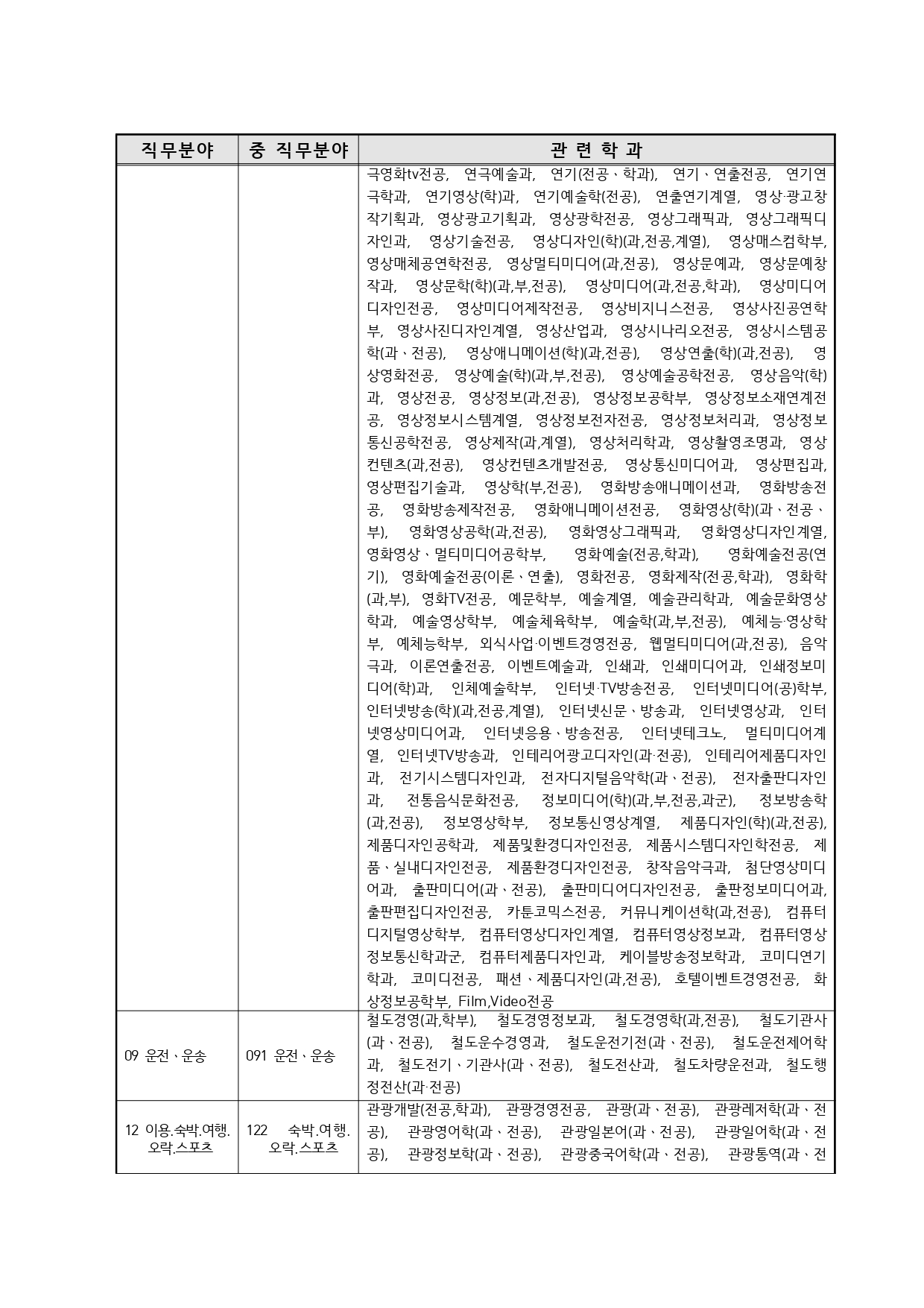 국가기술자격의 종목별 관련학과 안내.