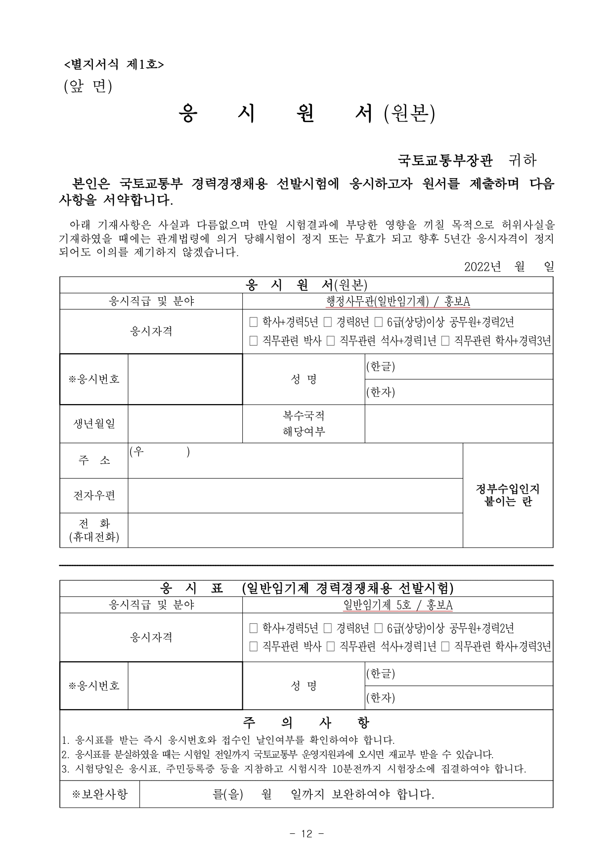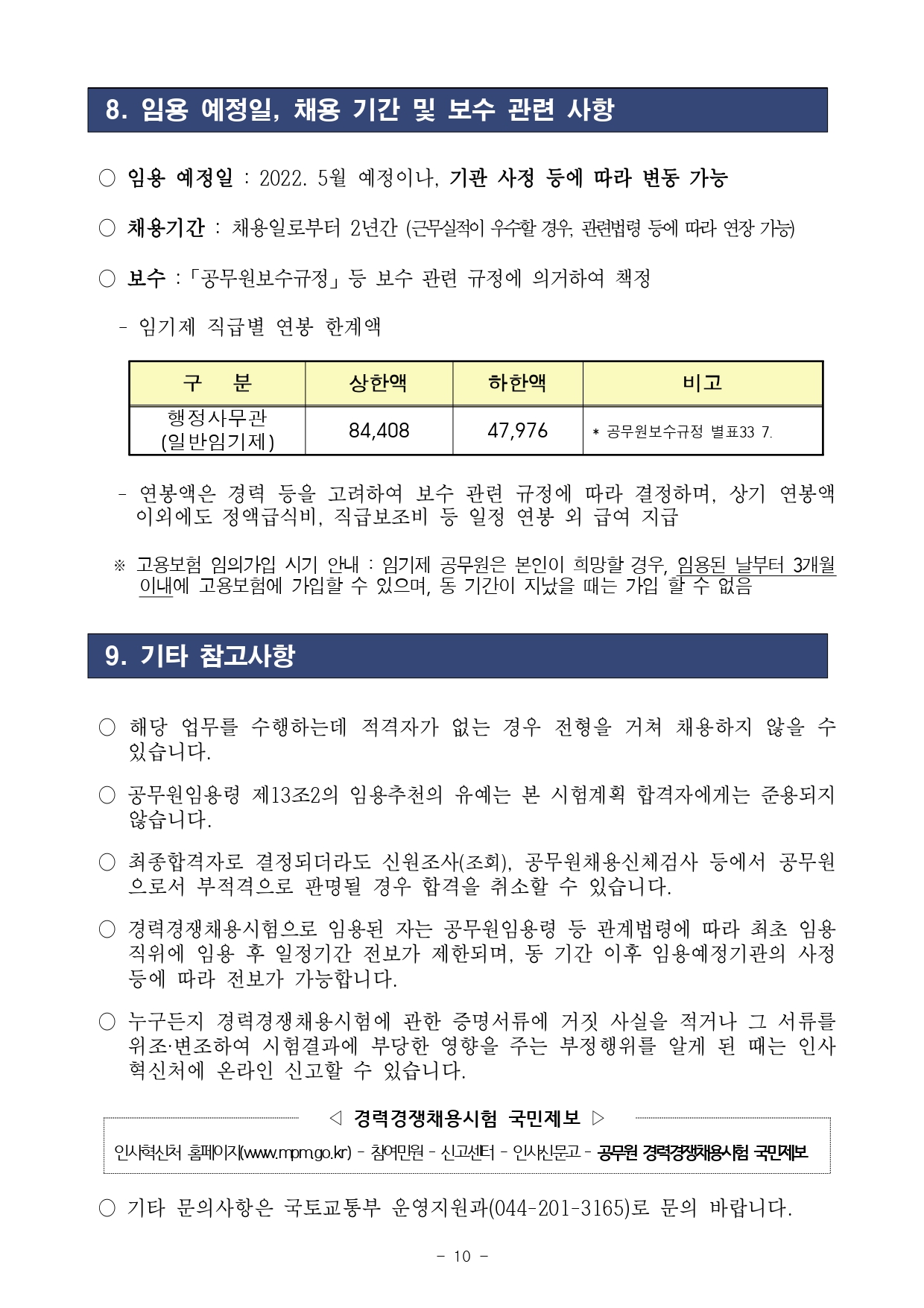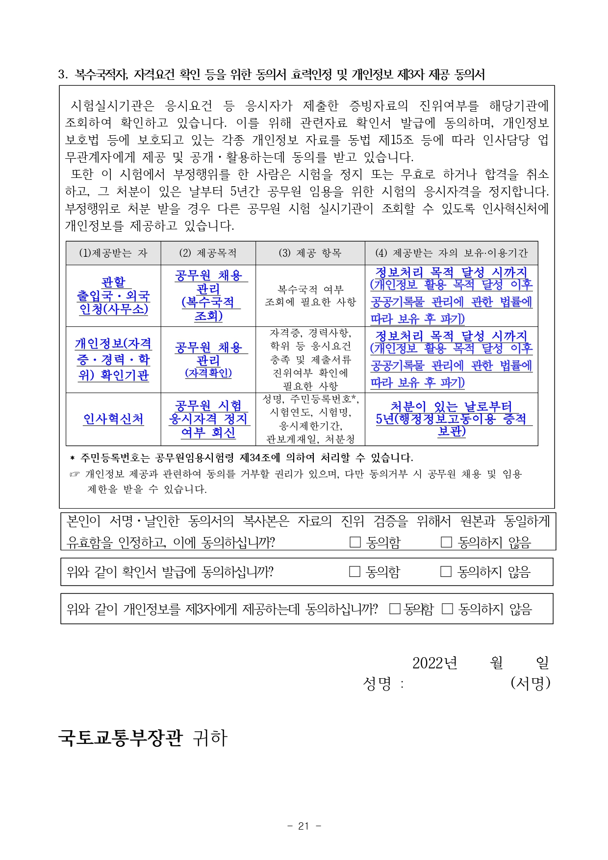2022 국토교통부 일반임기제공무원경력경쟁채용시험 공고(홍보)입니다.