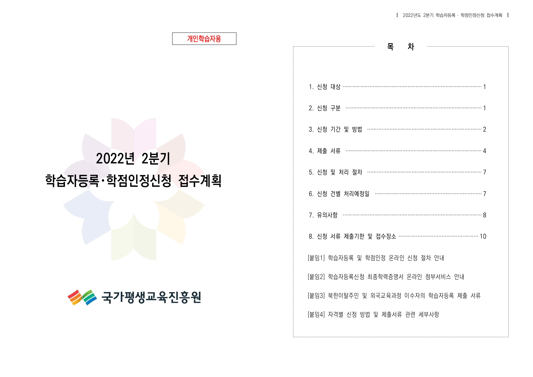 국가평생교육진흥원 학점은행제 2022년 2분기 학습자등록, 학점인정신청을 안내해드립니다.