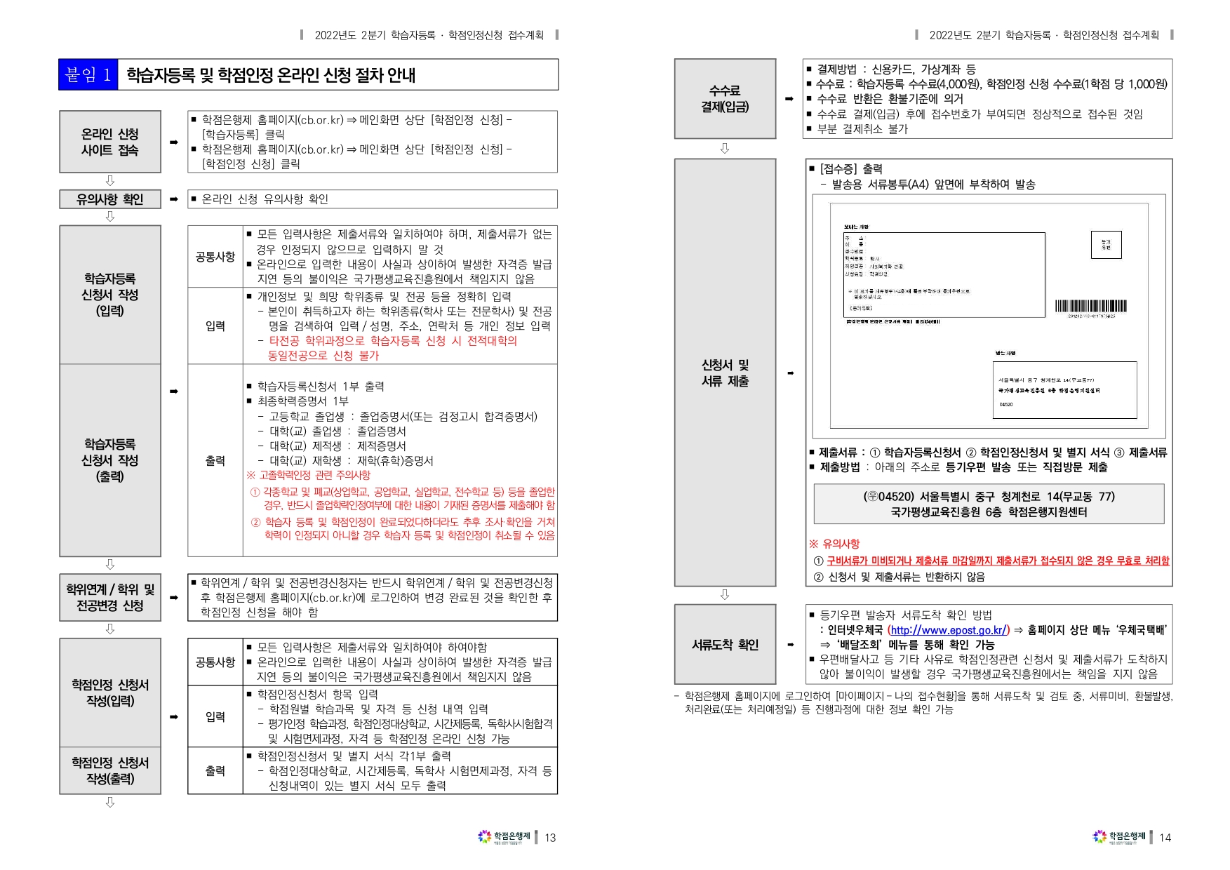 국가평생교육진흥원 학점은행제 2022년 2분기 학습자등록, 학점인정신청을 안내해드립니다.