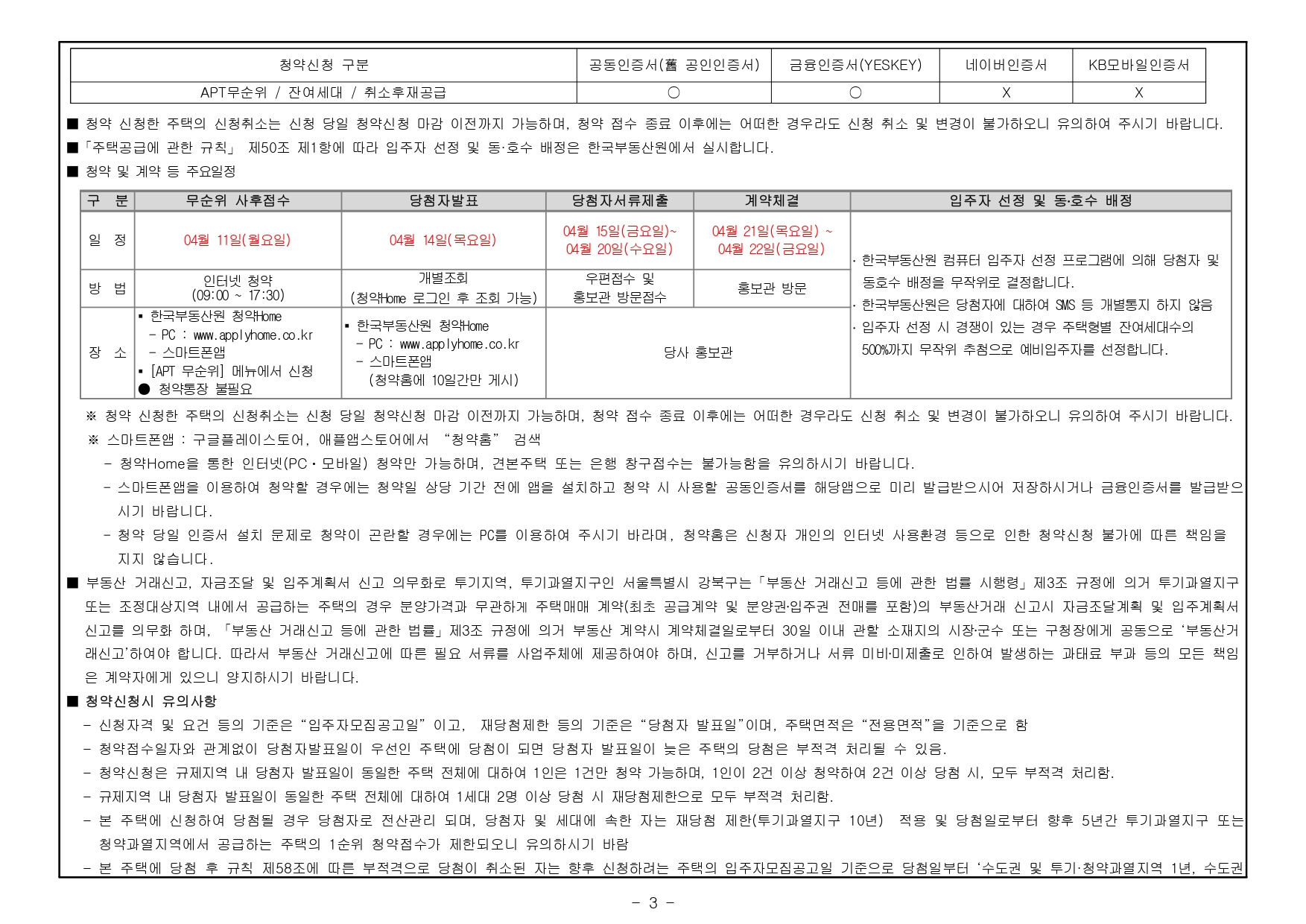 ■ 본 아파트의 무순위(사후) 입주자모집공고일은 2022.04.04.(월요일), 주택관리번호는 2022910096 입니다.(주택소유여부, 청약자 나이, 거주지역 등 청약자격조건 판단기준일입니다.