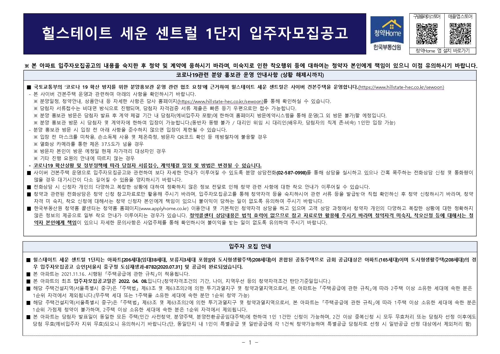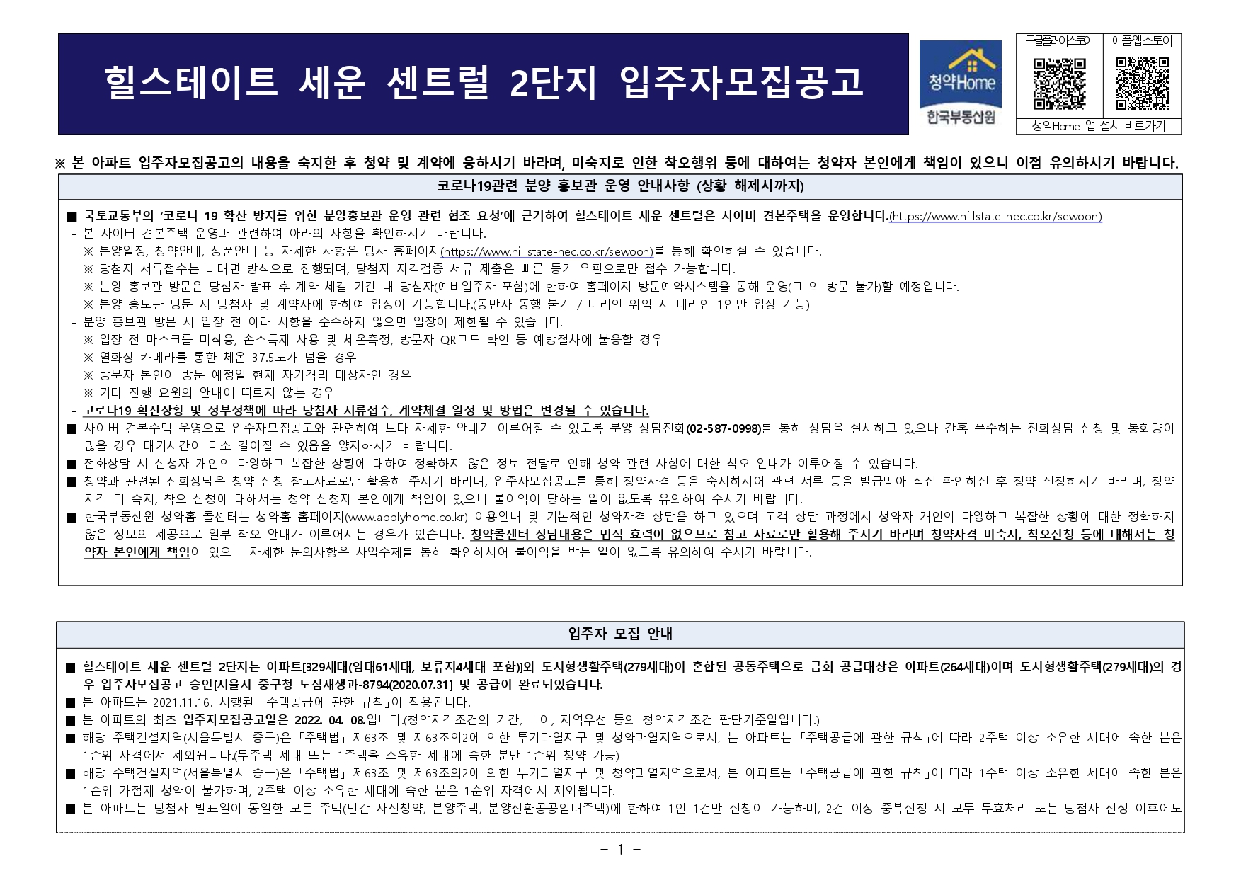 1단지 모집공고.