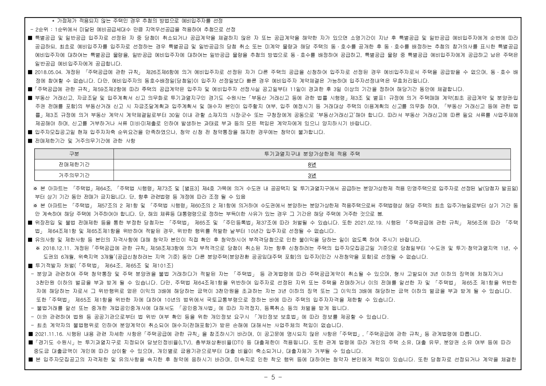 - 본 아파트는 수도권 투기과열지구 및 청약과열지역의 공공택지에서 공급하는 분양가상한제 적용 민영주택으로 당첨자로 선정시「주택공급에 관한 규칙」제54조에 따른 재당첨 제한을 적용받게 되며 기존 주택 당첨으로 인해 재당첨 제한 기간 내에 있는 자 및 그 세대에 속한 자는 본 아파트 청약이 불가합니다. (단, 본 제도는 당첨된 청약통장의 재사용을 허용하는 제도가 아니므로 당첨된 청약통장은 계약여부와관계없이 재사용이 불가합니다.)