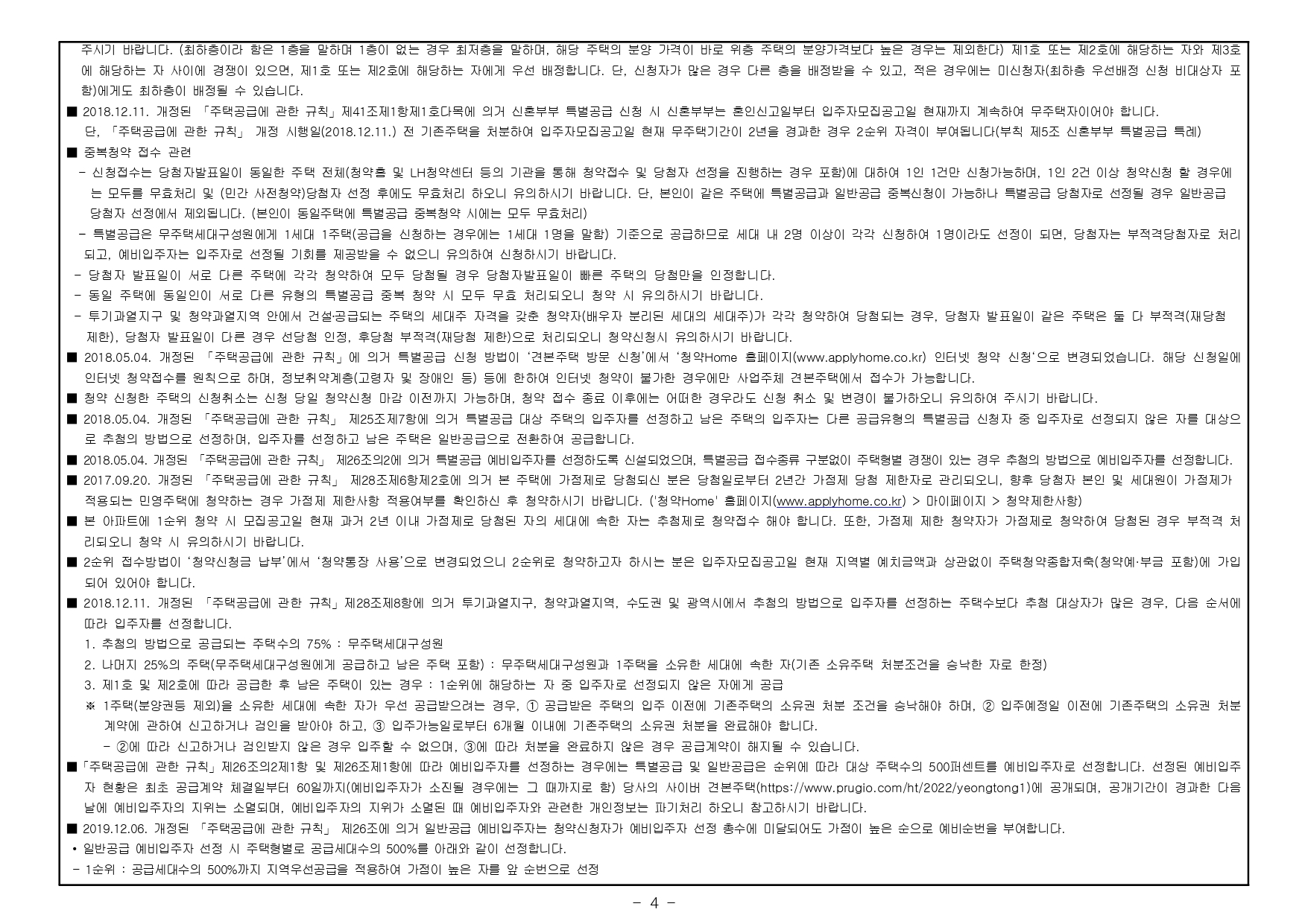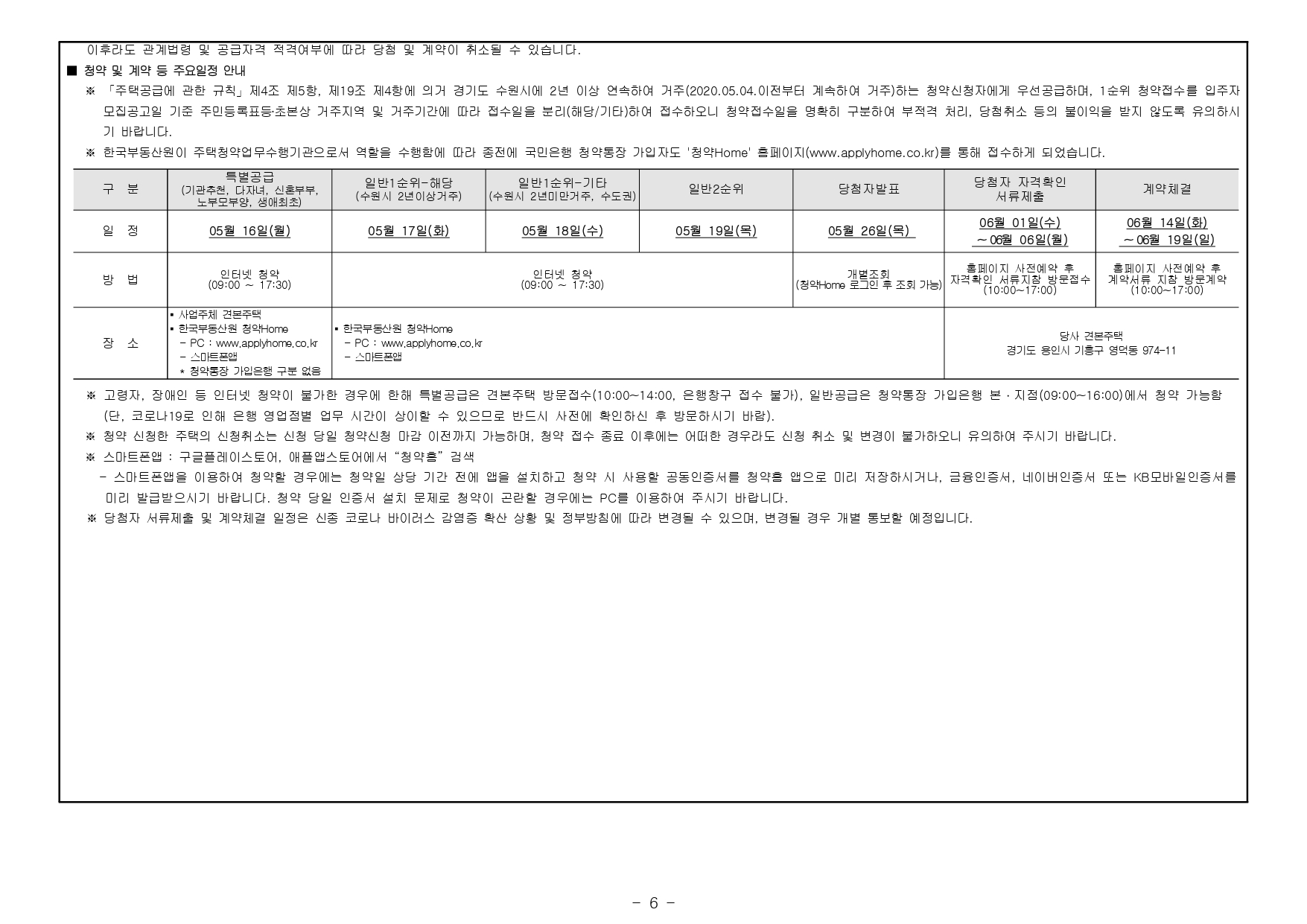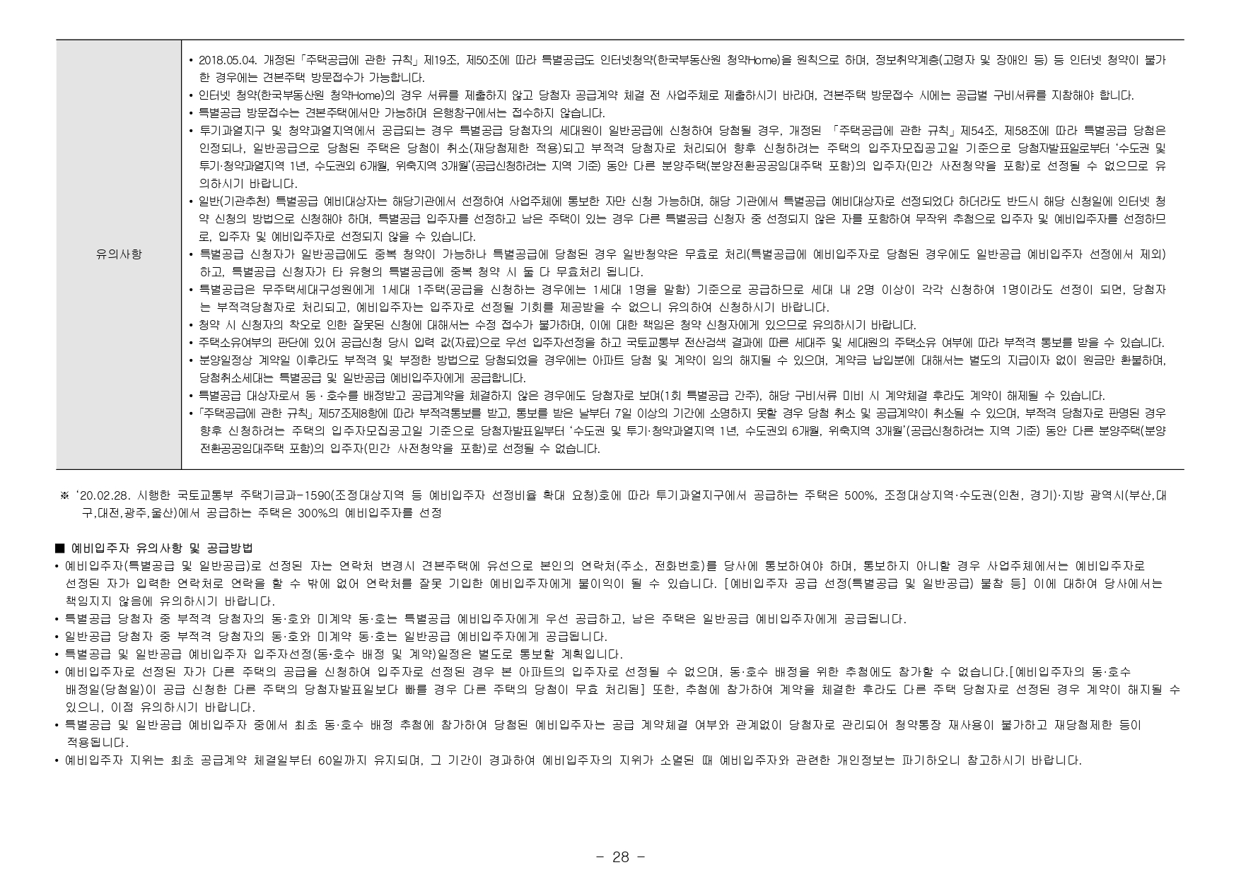 - 본 아파트는 당첨자 발표일이 동일한 모든 주택(민간 사전청약, 분양주택, 분양전환공공임대주택)에 한하여 1인 1건만 신청이 가능하며, 2건 이상 중복신청 시 모두 무효처리 또는 당첨자 선정 이후에도 당첨 무효(예비입주자 지위 무효)되오니 유의하시기 바랍니다. (단, 동일단지 내 1인이 특별공급 및 일반공급에 각 1건씩 청약가능하며 특별공급 당첨자로 선정 시 일반공급 선정 대상에서 제외처리 함)