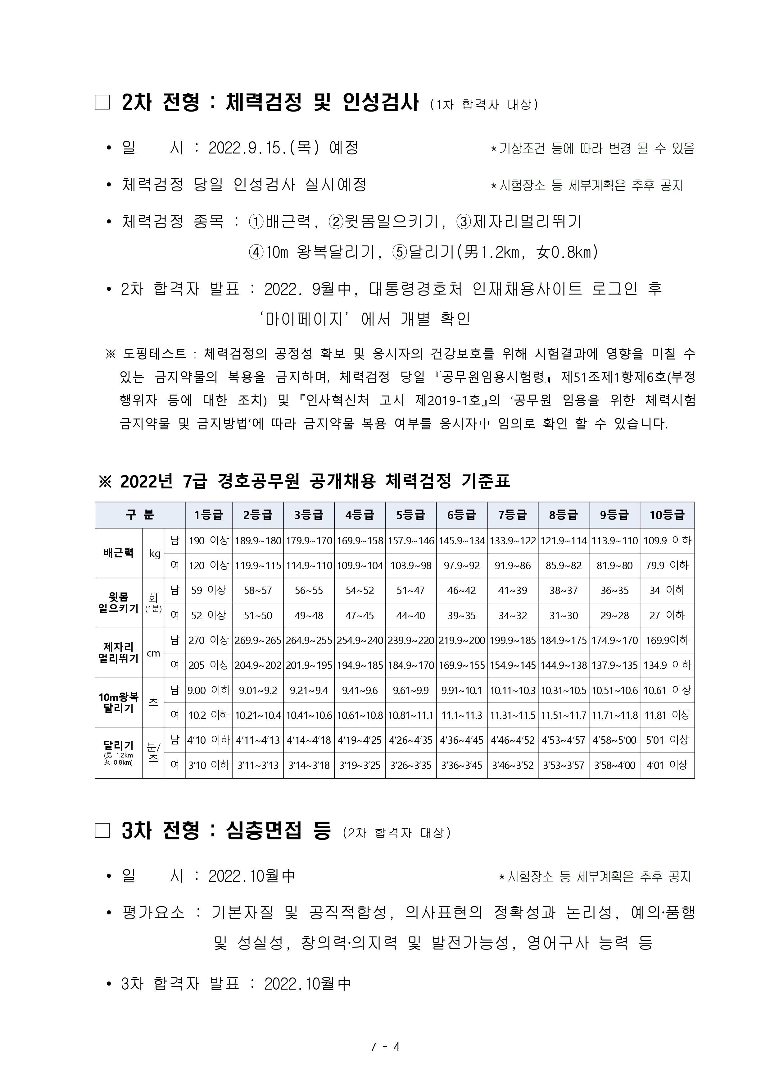 2022년도 대통령경호처 정기공채 시험공고를 다음과 같이 공고합니다.