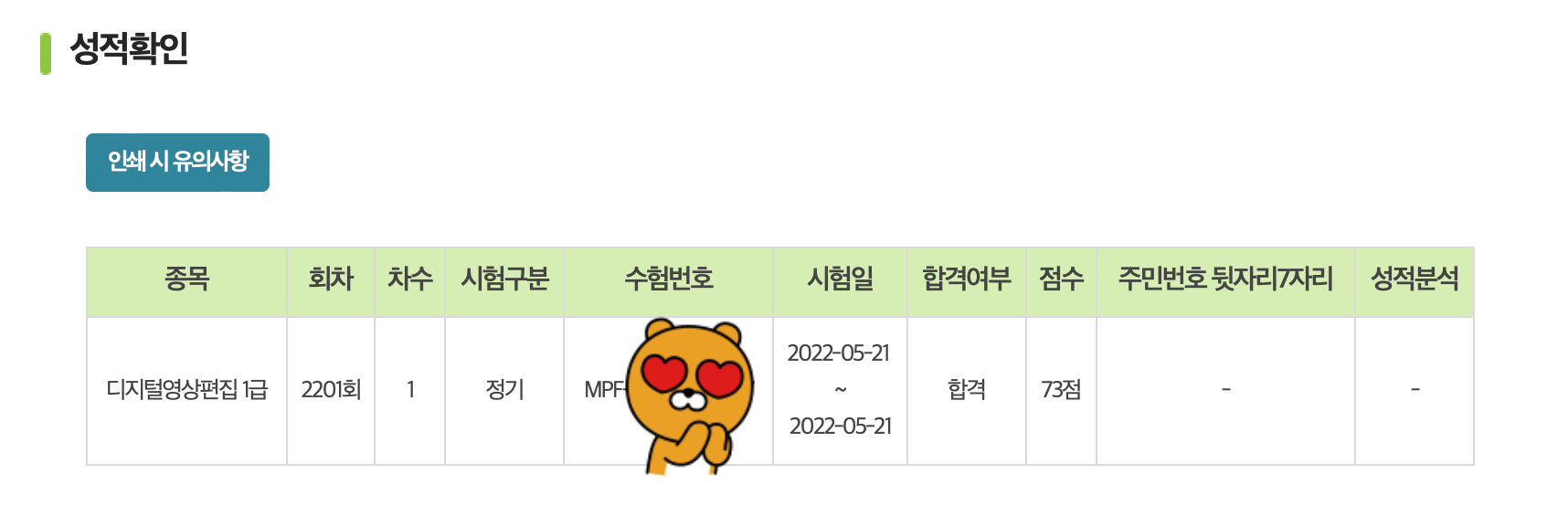 무엇보다 영상편집 실기문제에서 점수가 많이 깎인 것 같다.
