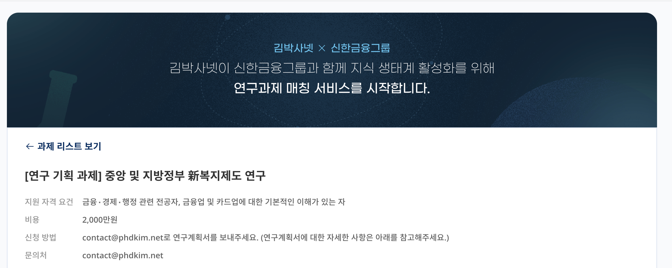 • 접수 방법 및 문의사항: contact@phdkim.net 으로 연구계획서 발송
