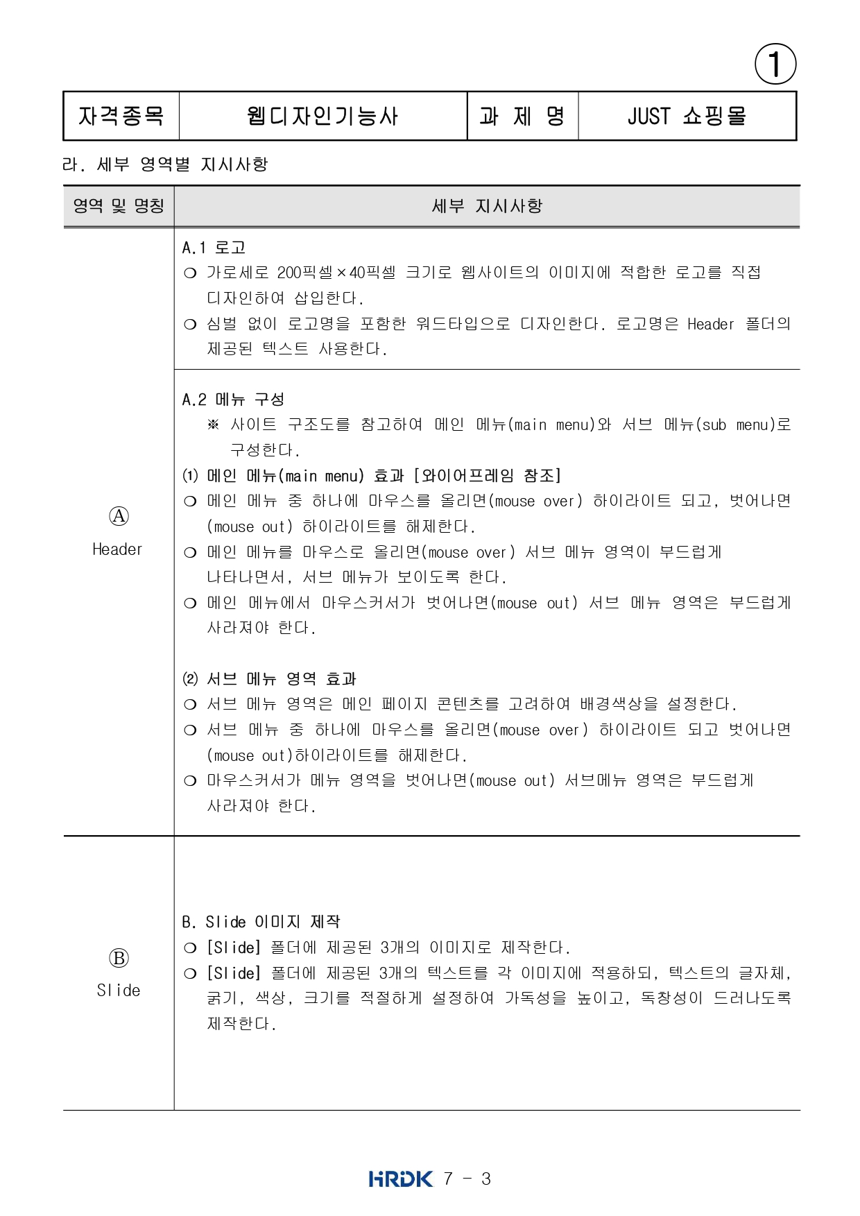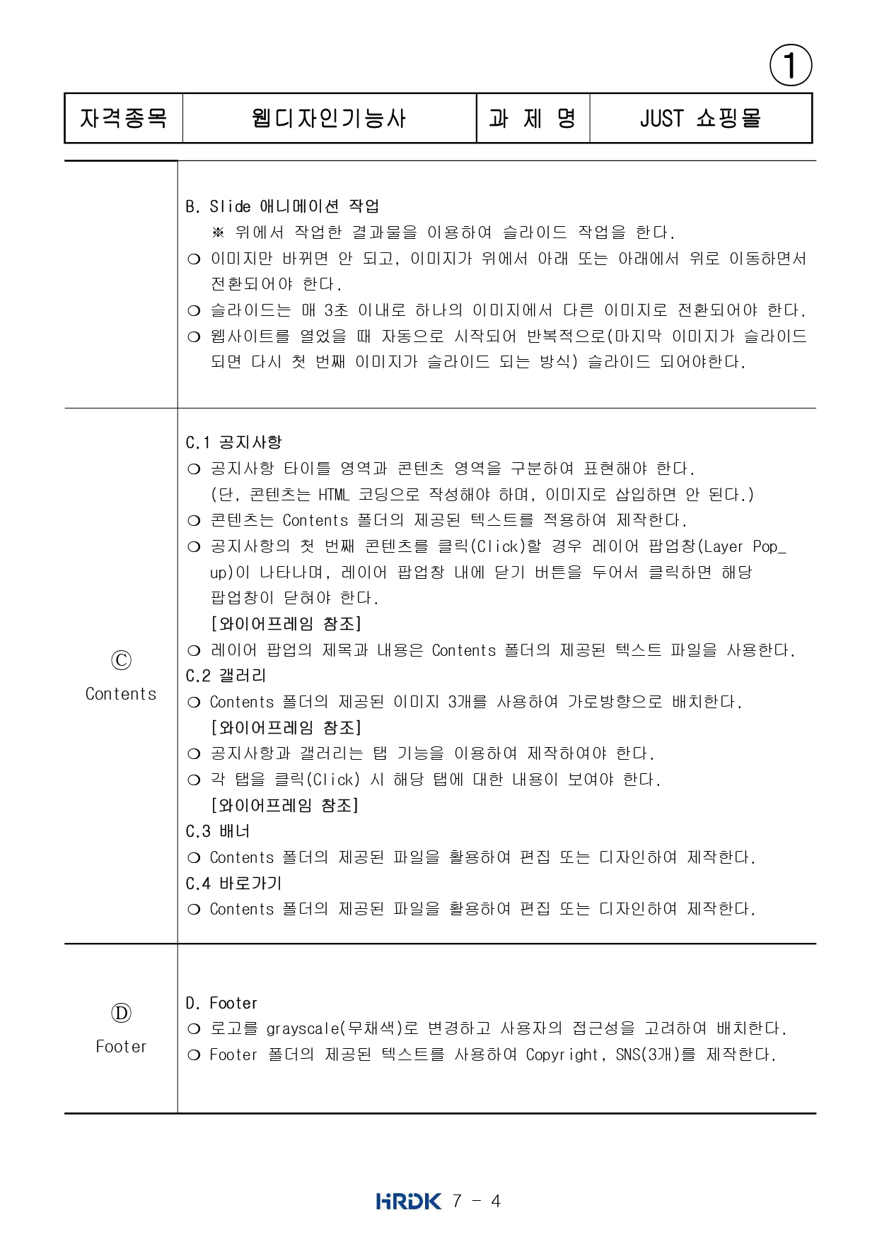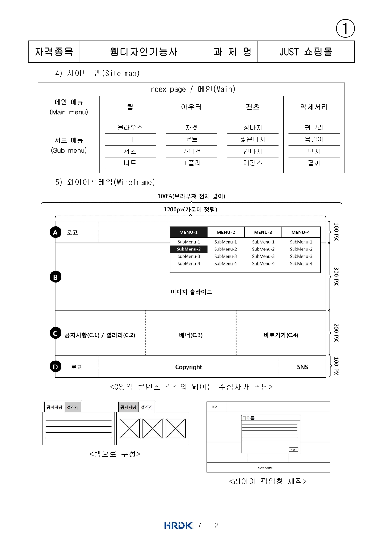 웹디자인 실기문제는 대략 아래처럼 나오나보다.