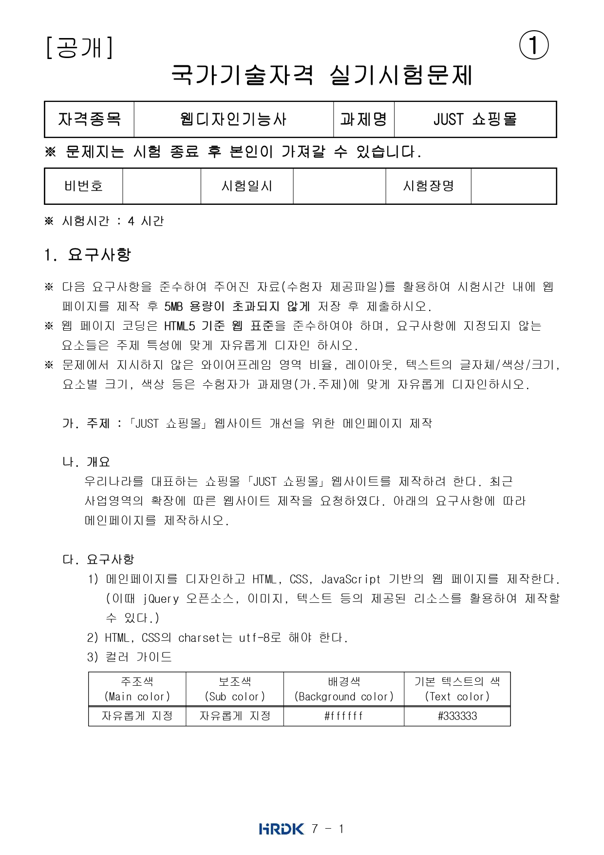 큐넷 홈페이지 공지사항에 있는 웹디자인기능사 실기 공개문제 파일이다.