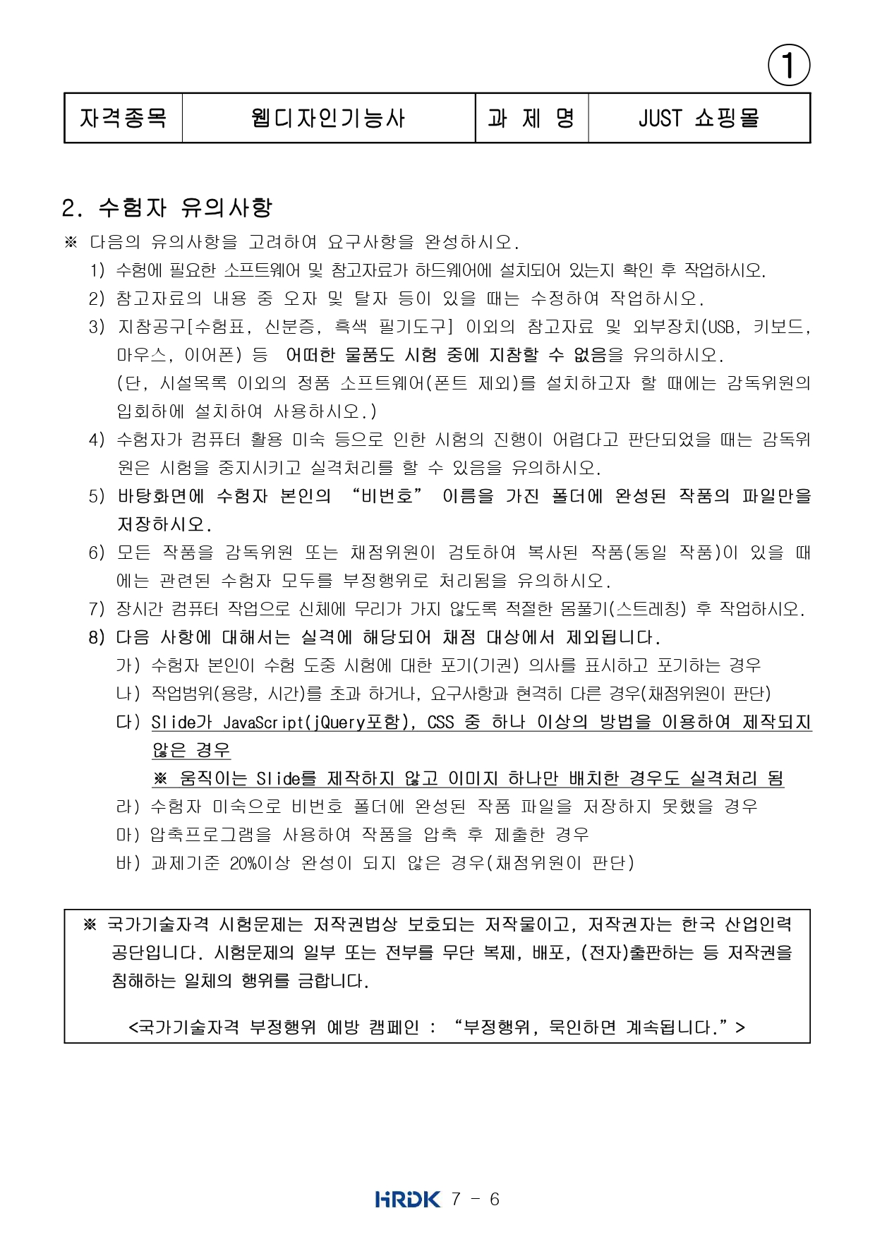 큐넷 홈페이지 공지사항에 있는 웹디자인기능사 실기 공개문제 파일이다.