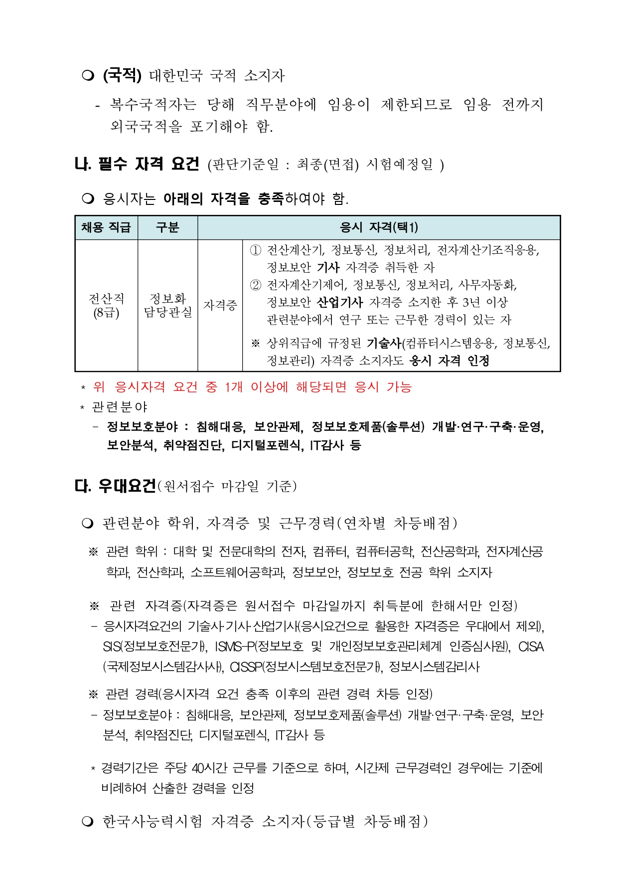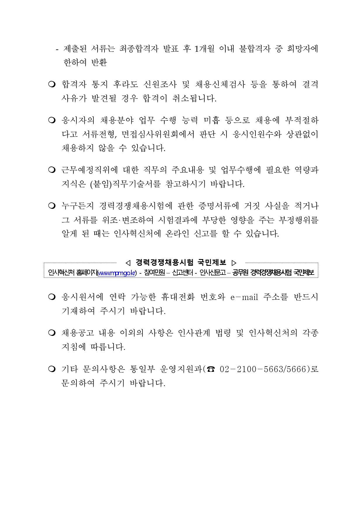 통일부 전산직(8급) 공무원 경력경쟁채용 공고문.hwp