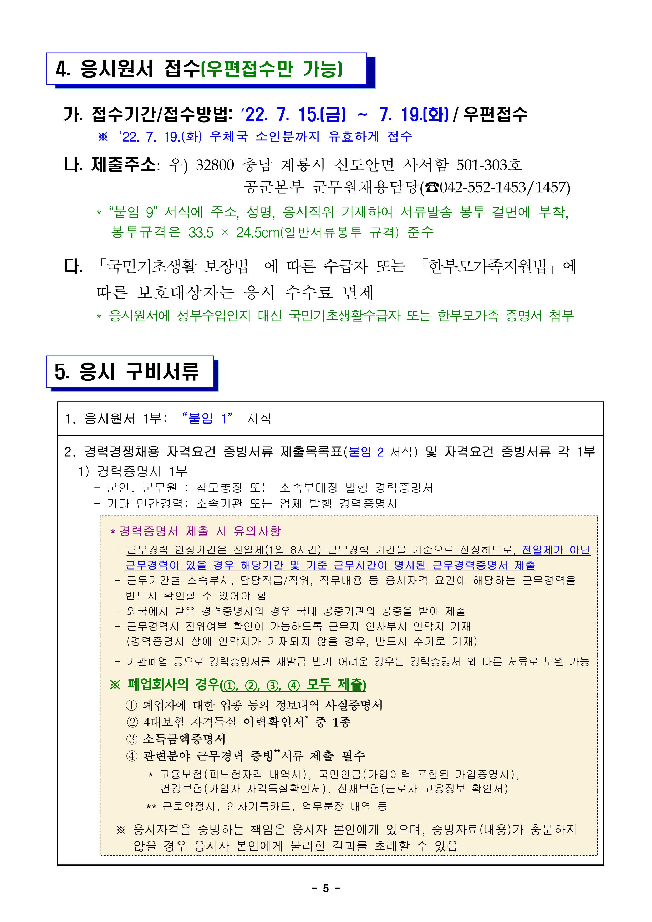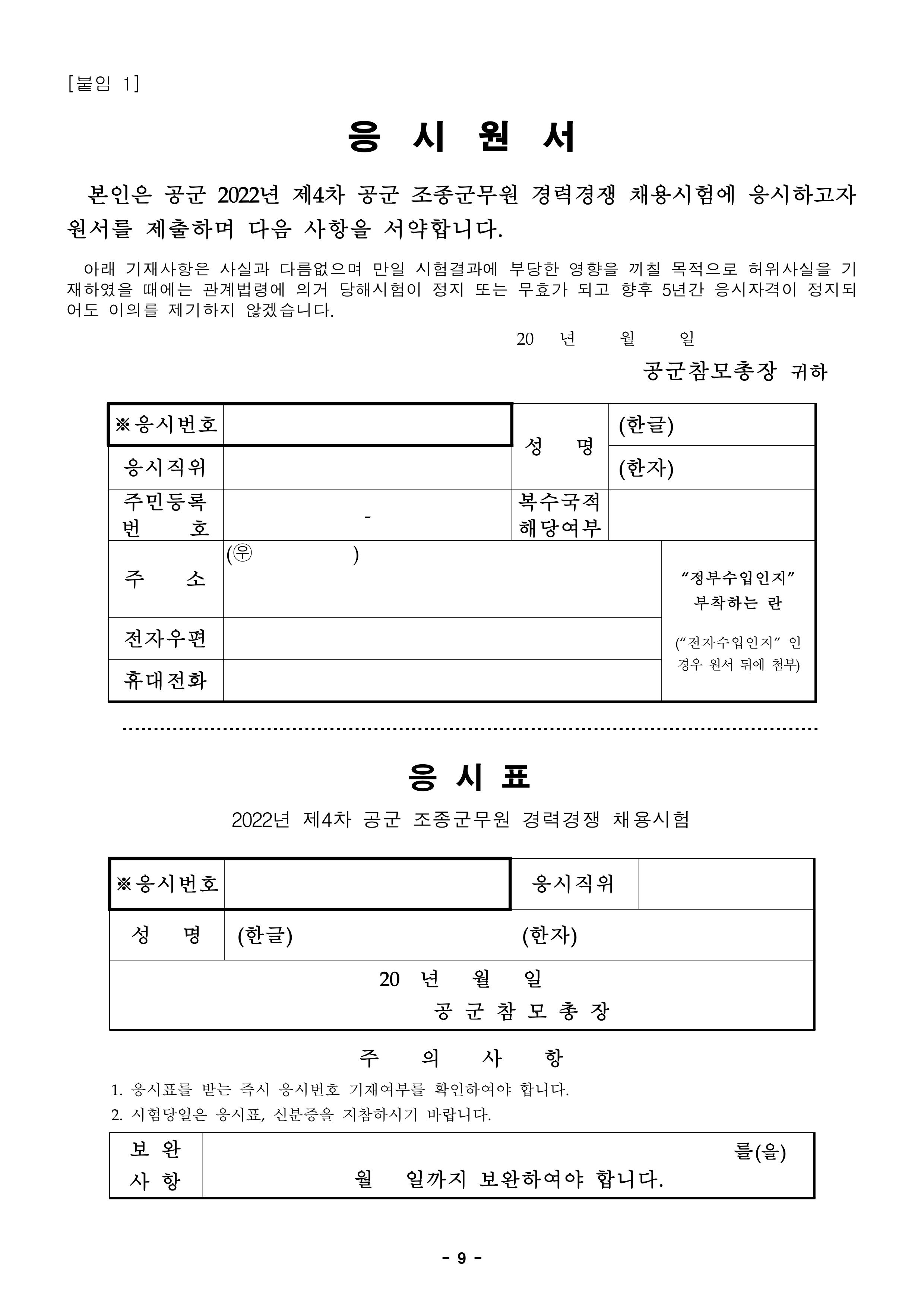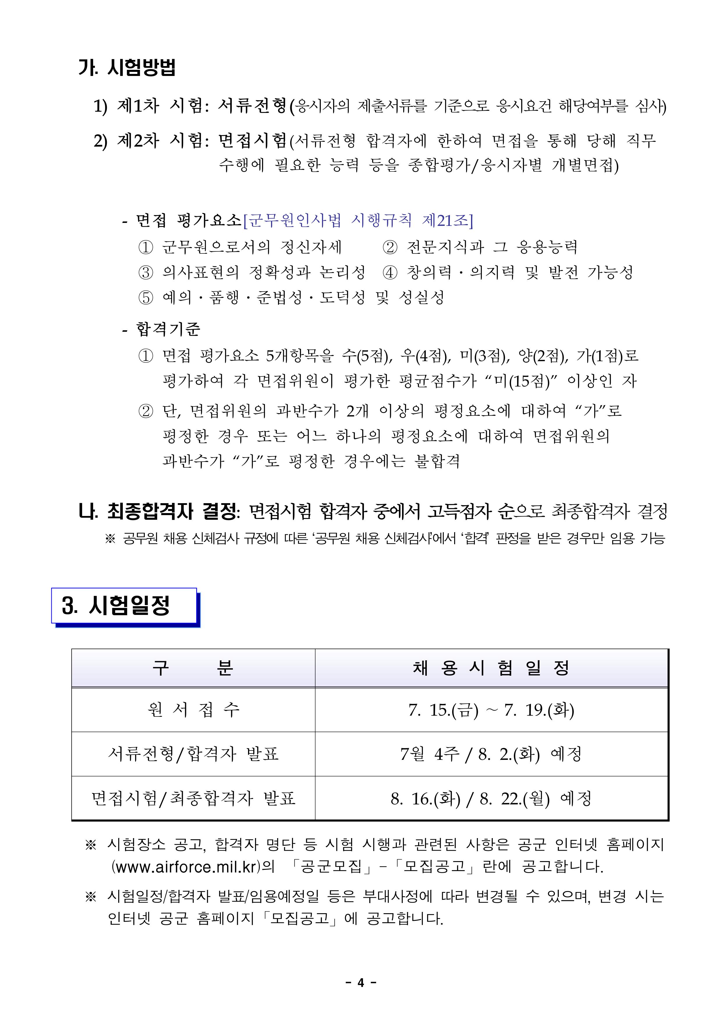 2022년 제4차 공군 조종군무원 경력경쟁채용시험 계획 공고입니다.