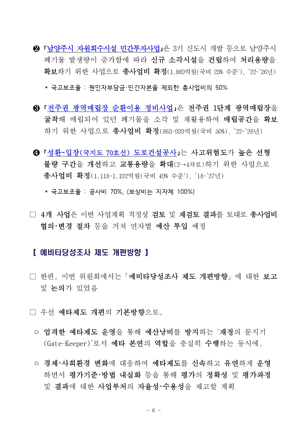 수색~광명 고속철도 건설 등 4개 사업 예타 통과 예비타당성조사 제도 개편방향 논의에 관한 보도자료입니다.
