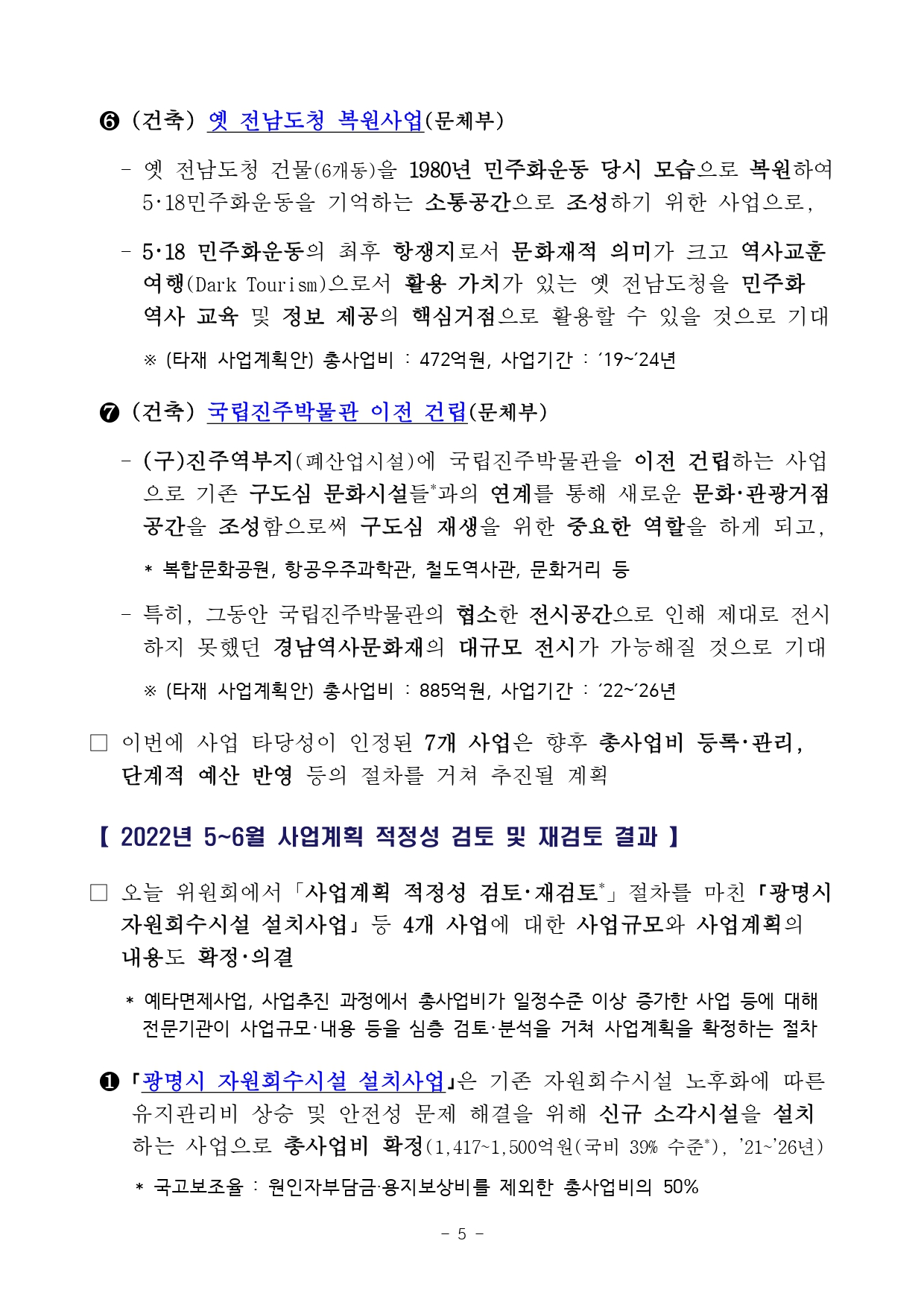 □ 천안~청주공항 복선전철 건설, 옛 전남도청 복원 등 3개 사업 타재 통과