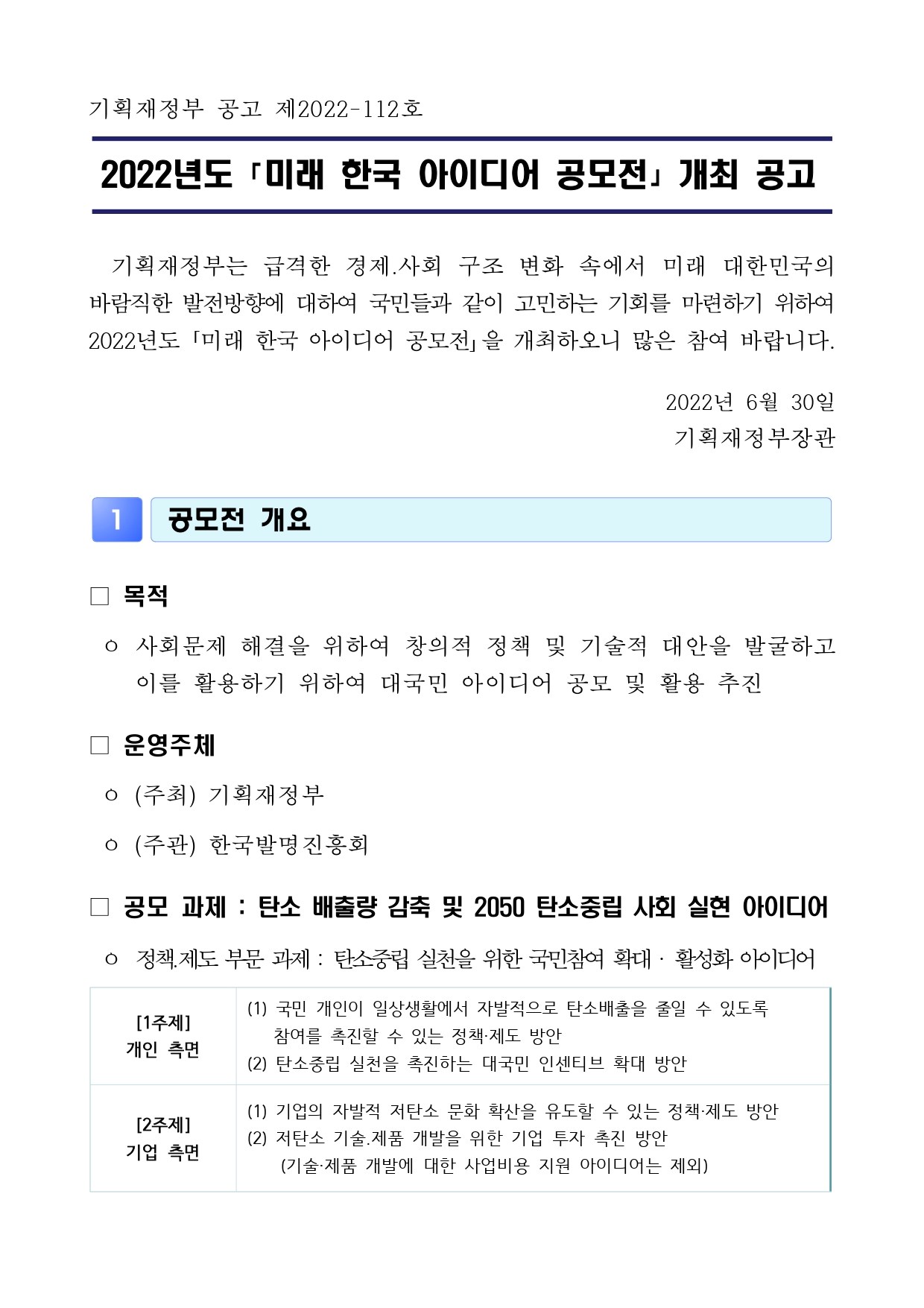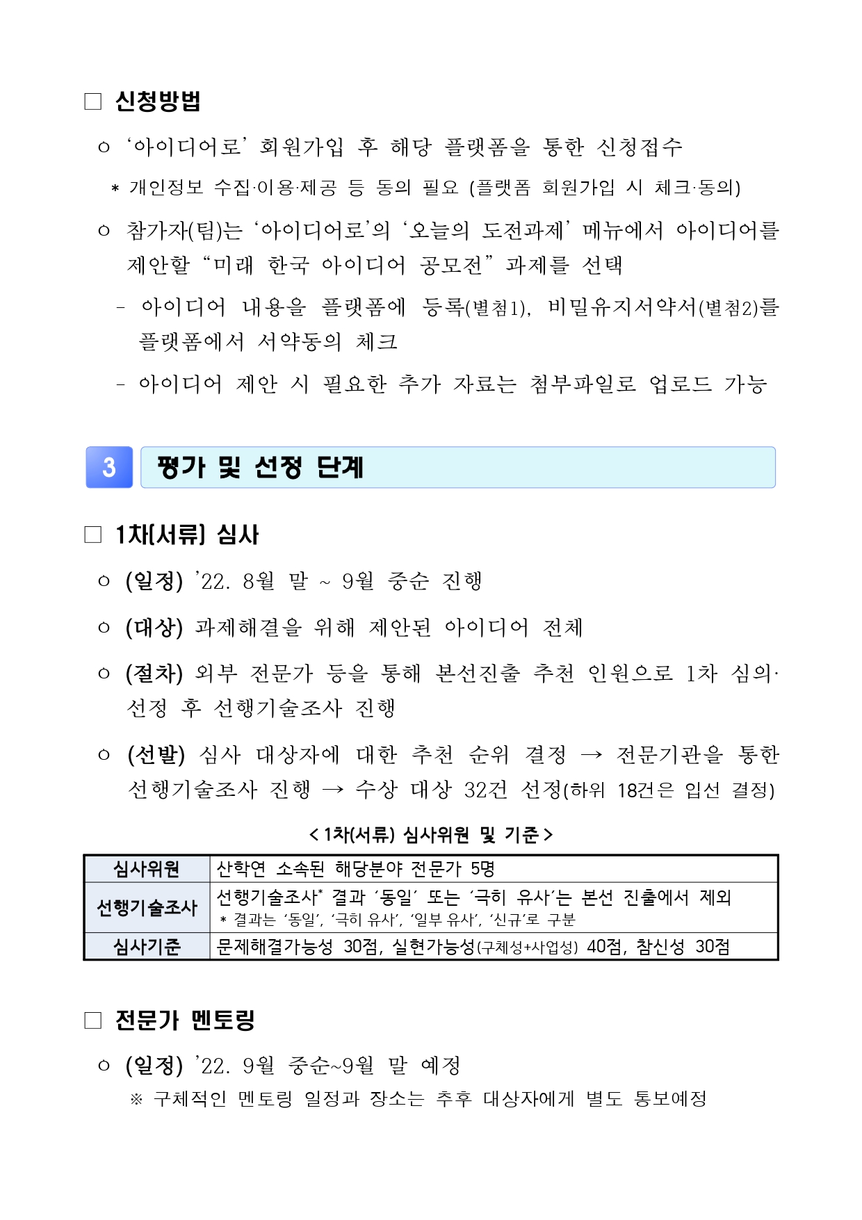 붙임1. 2022년 미래한국 아이디어 공모전 공고문(최종)★.hwp