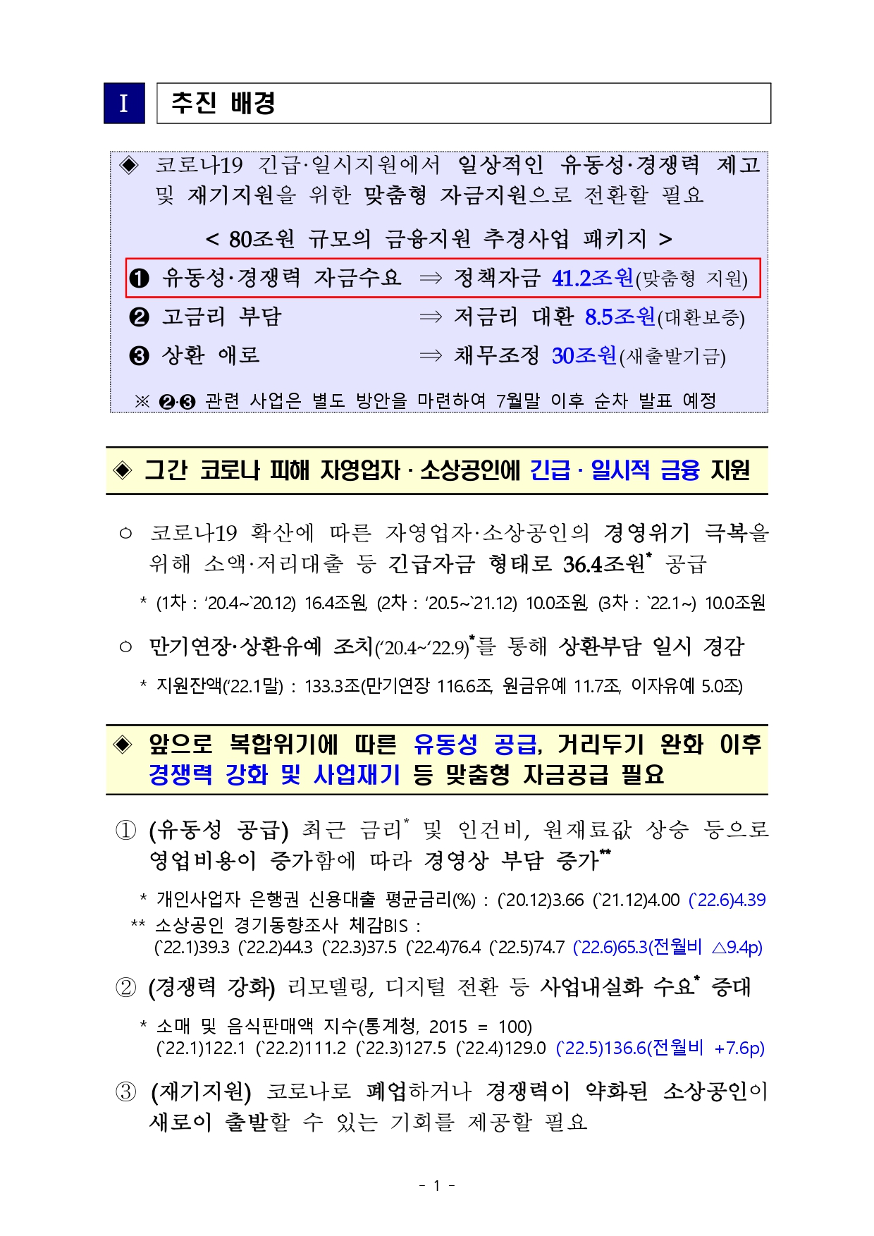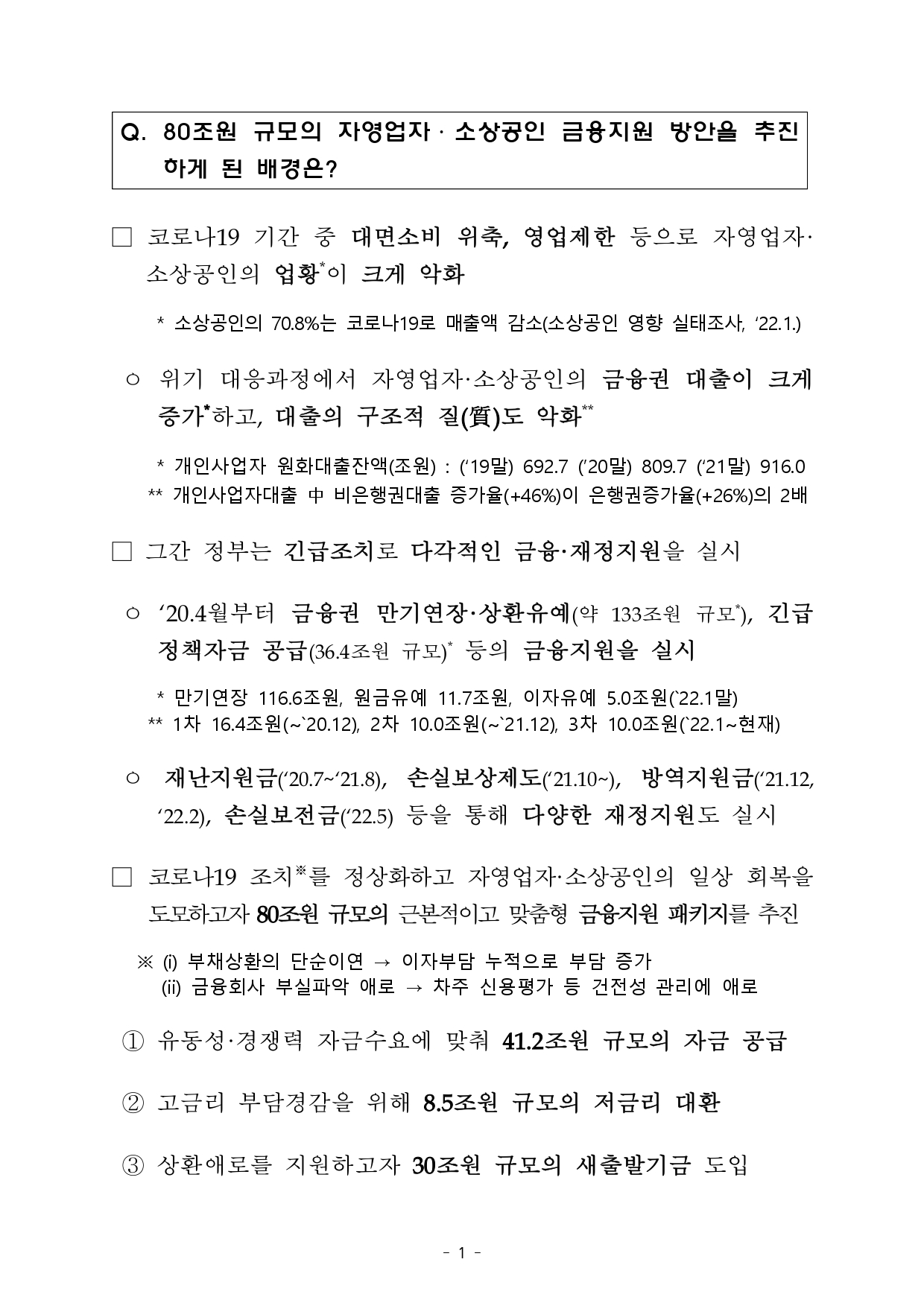정부가 자영업자ㆍ소상공인 등의 금융ㆍ영업상황에 맞는 80조원 규모의 맞춤형 종합 지원방안을 마련했습니다.