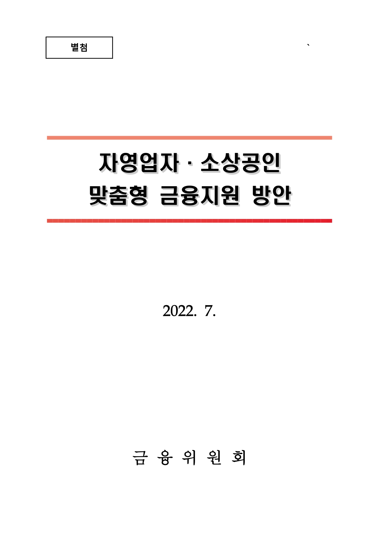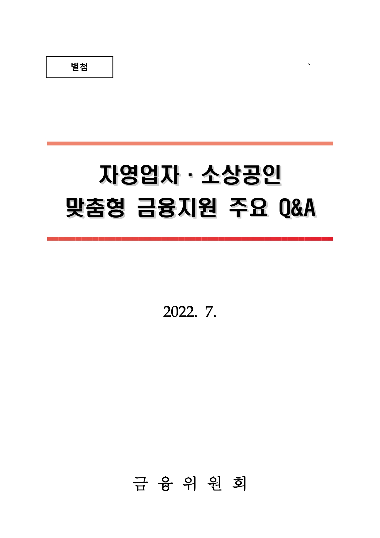2022 자영업자·소상공인에 대한 맞춤형 금융지원 안내입니다.