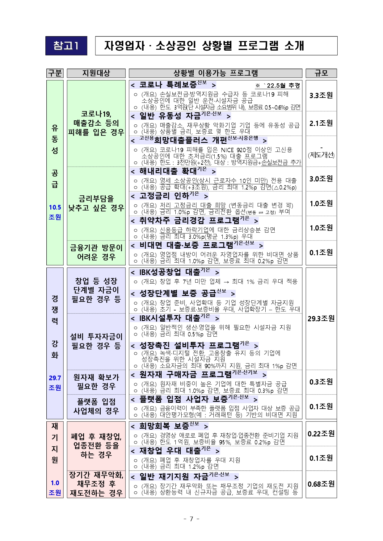 2022 자영업자·소상공인에 대한 맞춤형 금융지원 안내입니다.