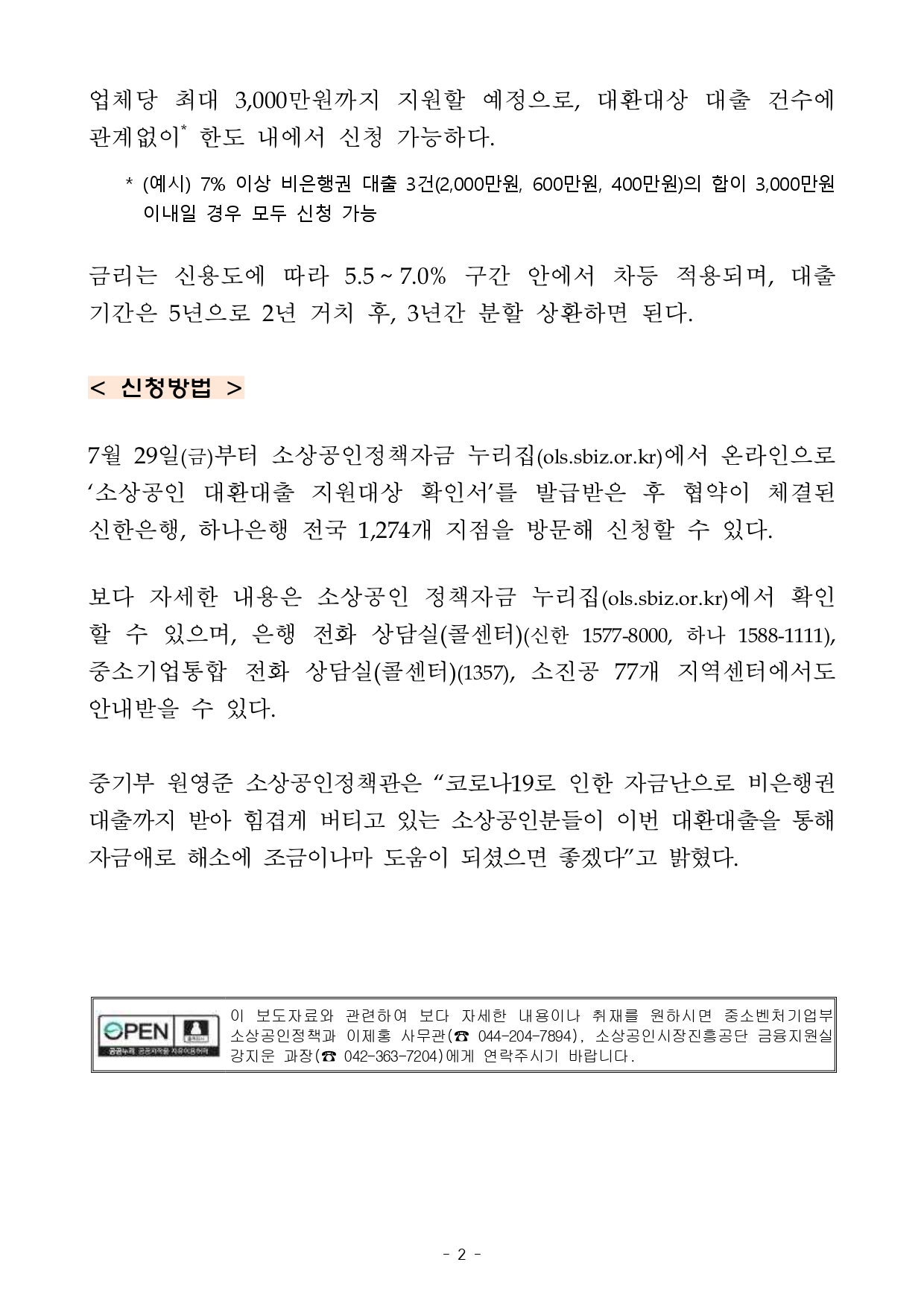 □ 7월 29일(금)부터 소상공인정책자금 누리집(ols.sbiz.or.kr)에서 지원대상 확인서 발급 후 전국의 신한·하나 은행에서 신청 가능