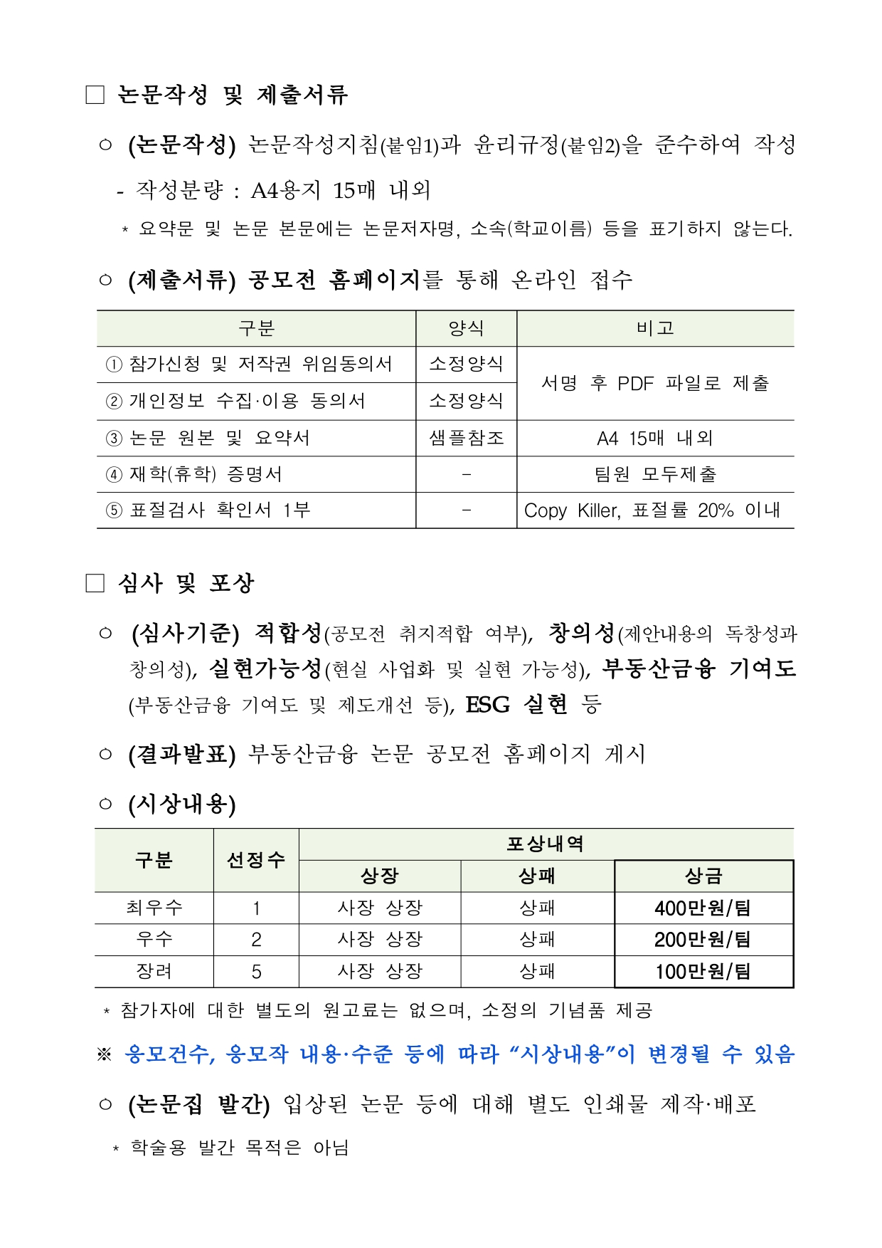2022 LH 대학(원)생 부동산금융 논문 공모전