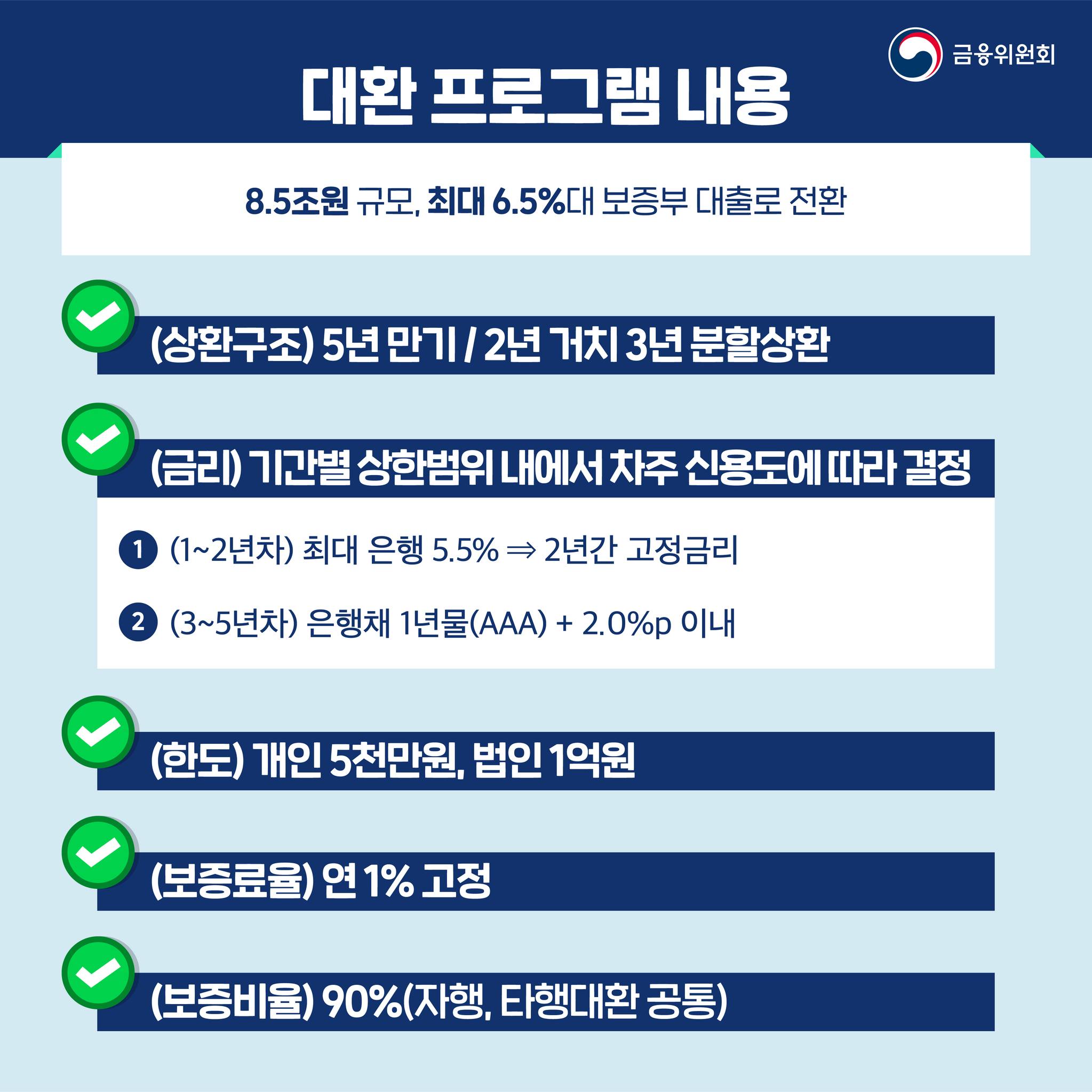올해 9월말부터 시행되는 8.5조원 규모의 저금리 대환 프로그램을 눈여겨 보세요.