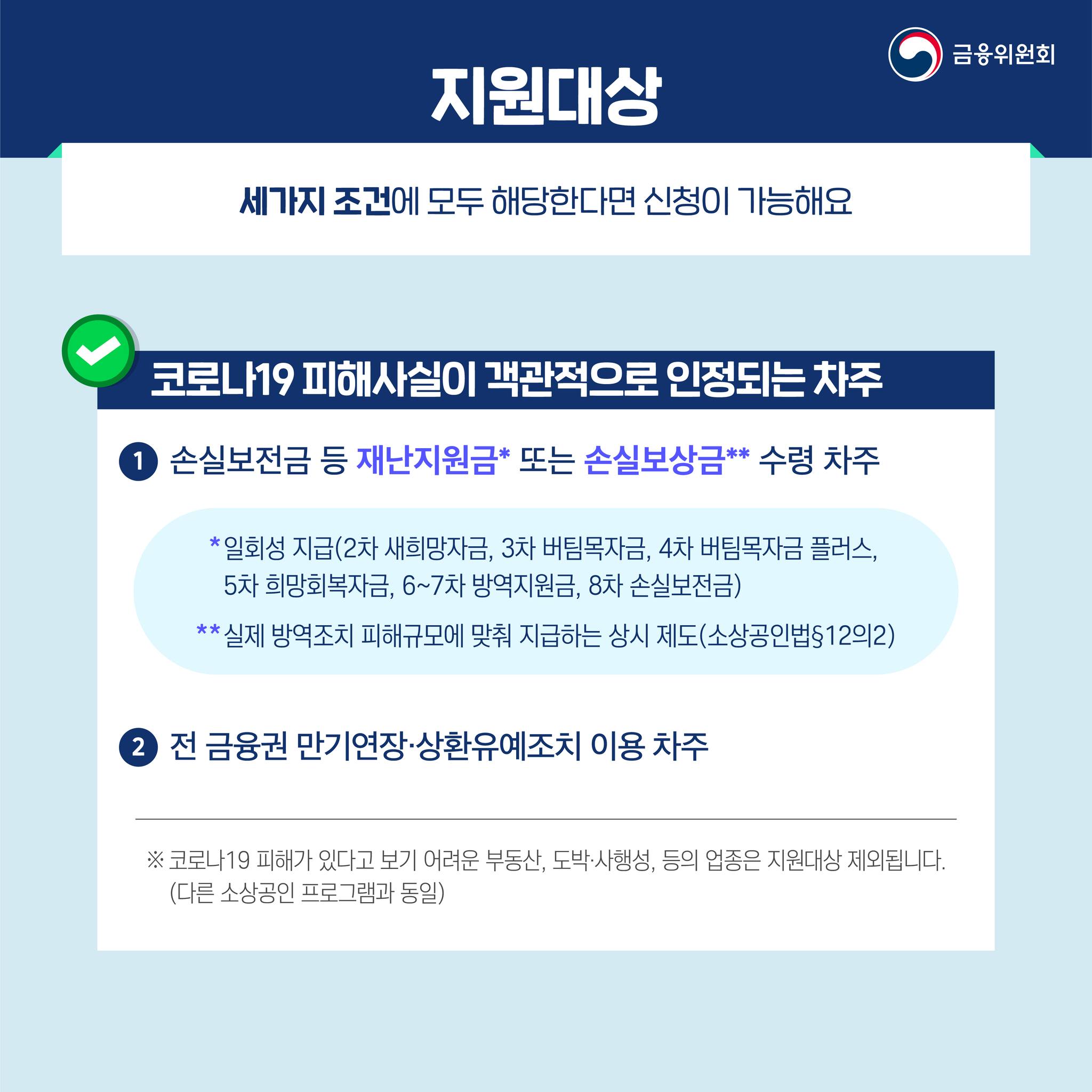 | 수해피해 가계ᆞ중소기업을 위한 금융지원방안 대출, 납입유예 (0) | 2022.08.11 |