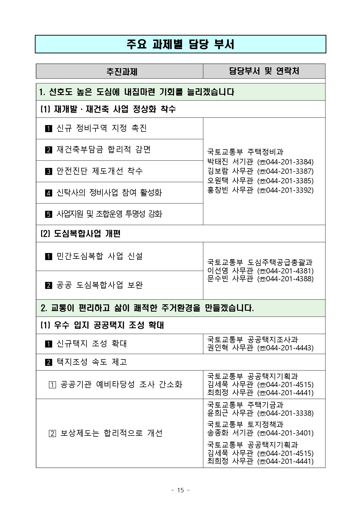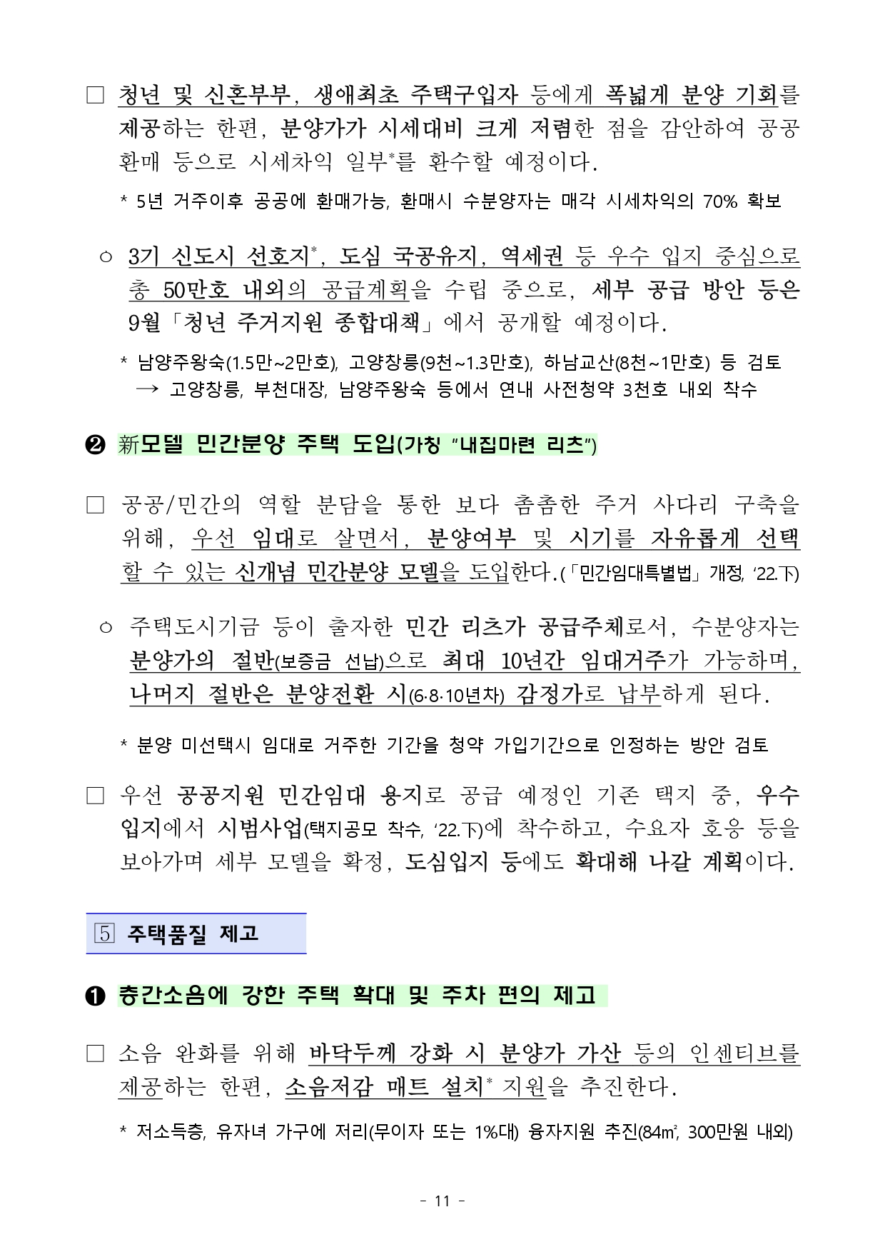 · 신규택지: 15만호 신규 발굴, 10월부터 순차 발표
