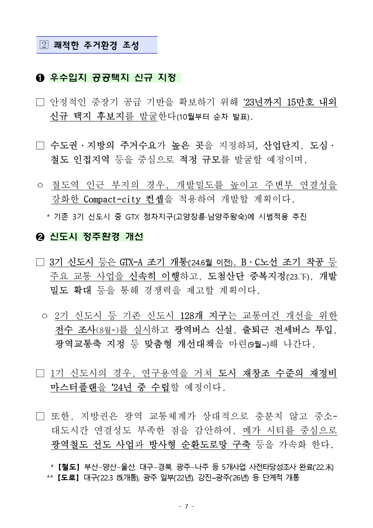 · GTX: A노선 ‘24.6월 이전 조기개통, B·C노선 조기착공