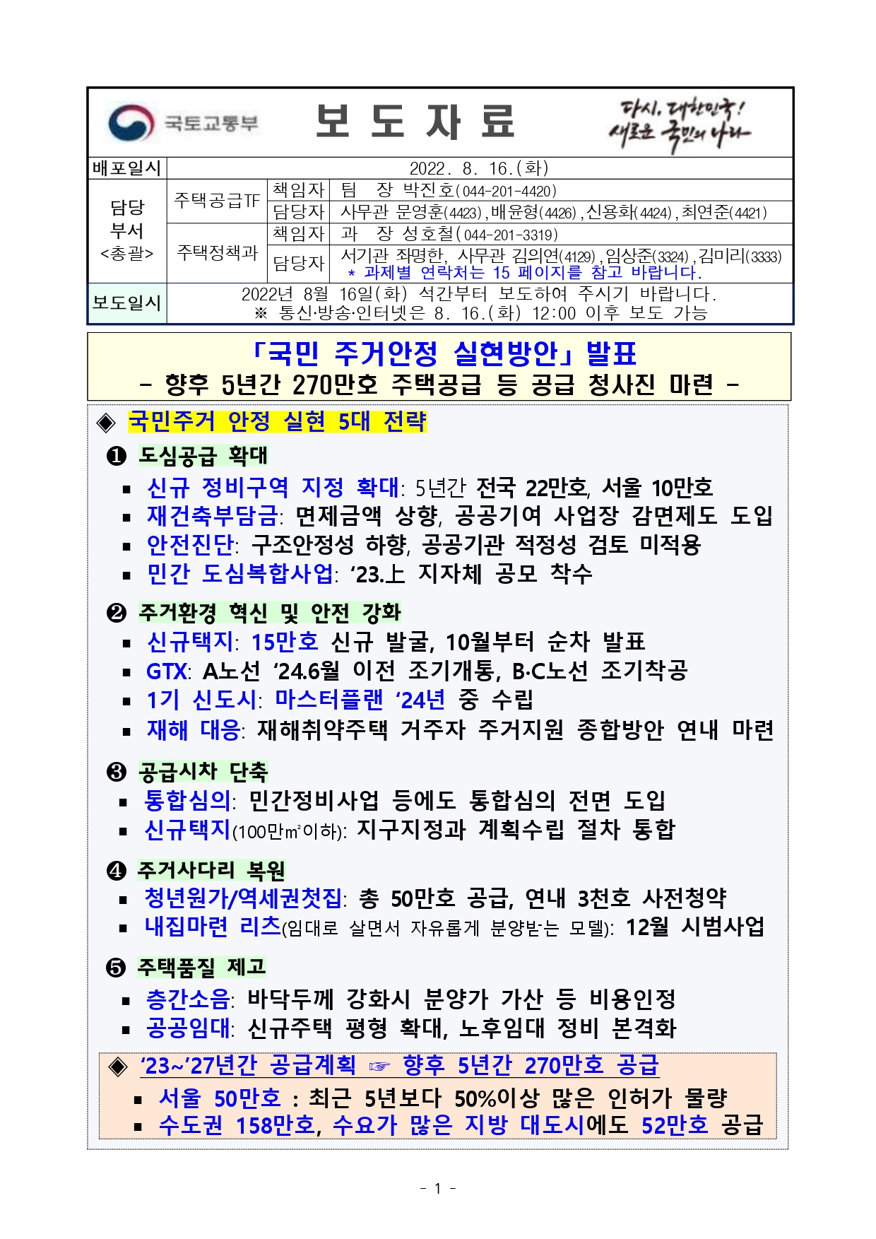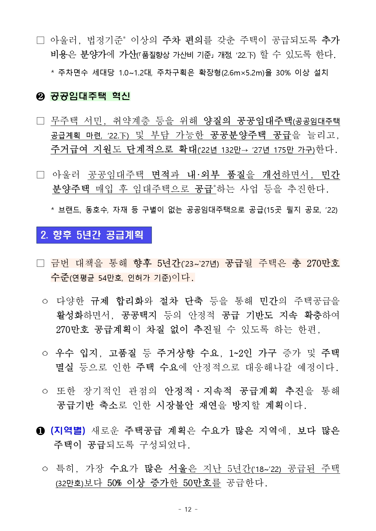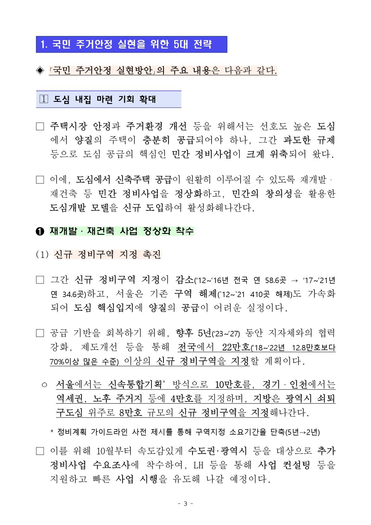 · 신규 정비구역 지정 확대: 5년간 전국 22만호, 서울 10만호