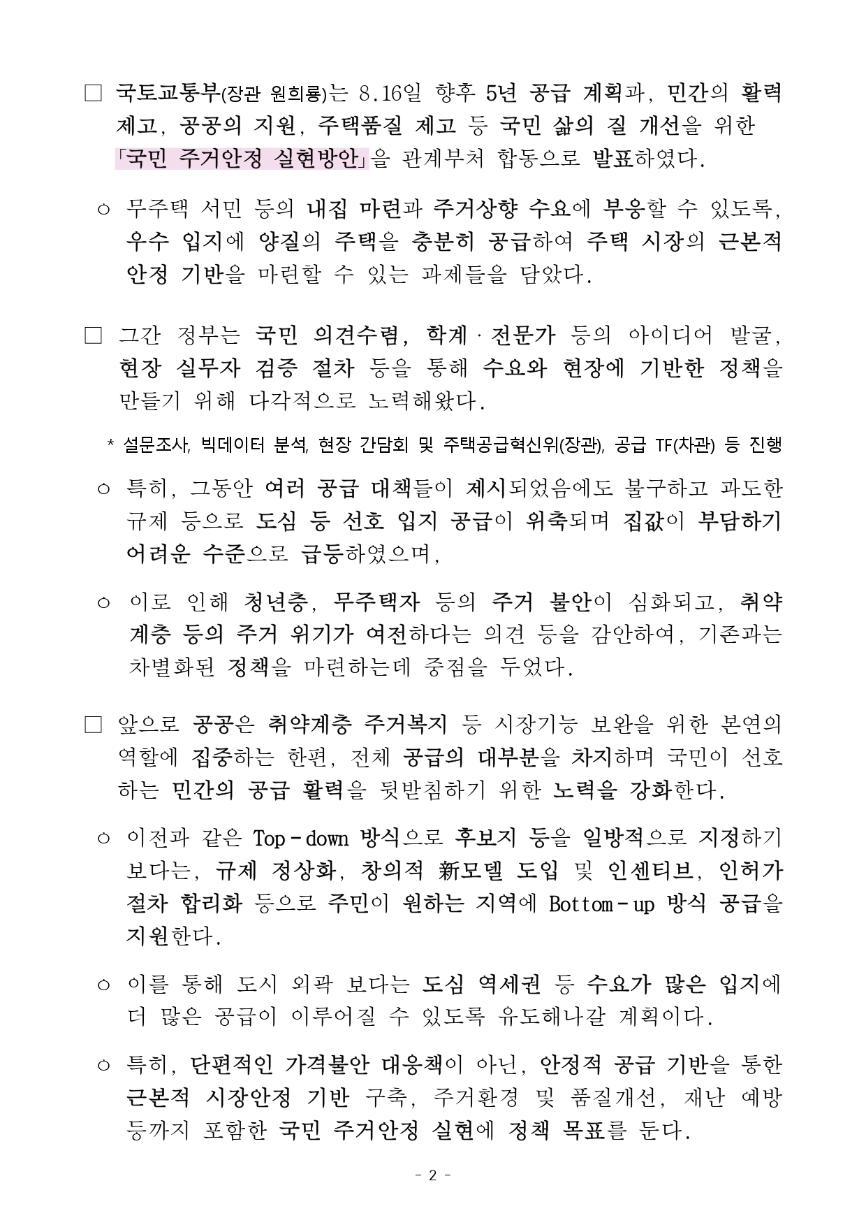 · 공공임대: 신규주택 평형 확대, 노후임대 정비 본격화
