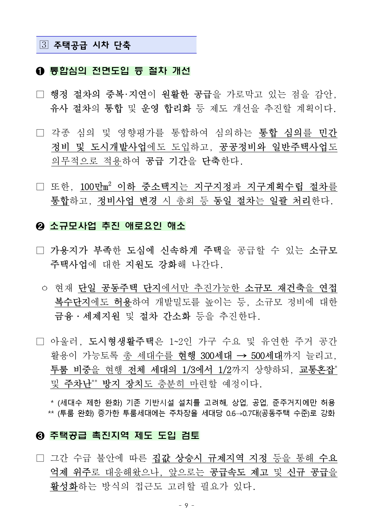 · 통합심의: 민간정비사업 등에도 통합심의 전면 도입