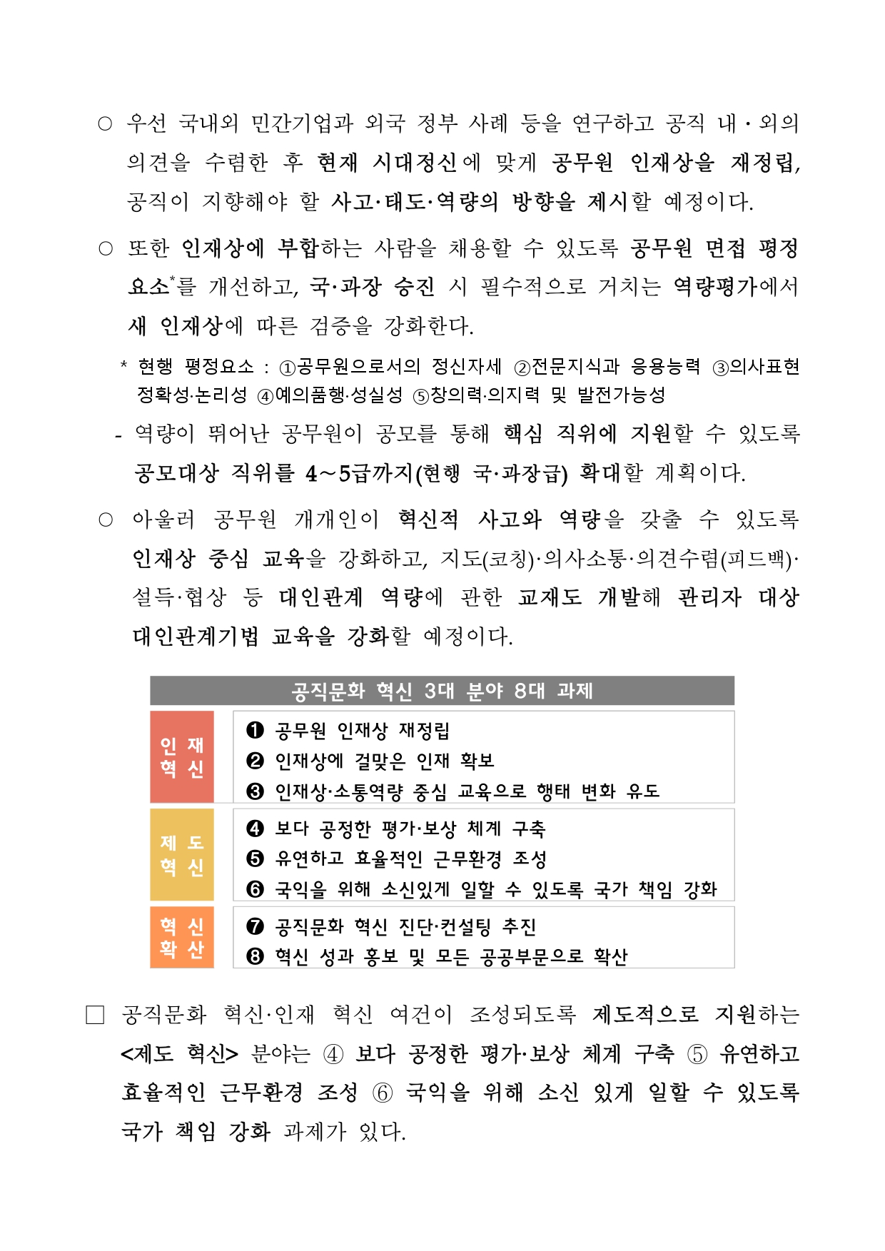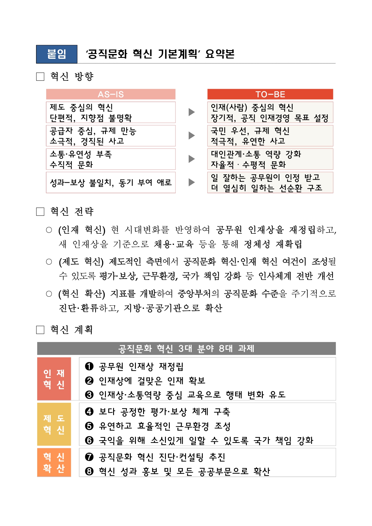 혁신계획은 ▲인재 혁신 ▲제도 혁신 ▲혁신 확산의 3개 분야, 총 8대 핵심과제로 구성됐다.