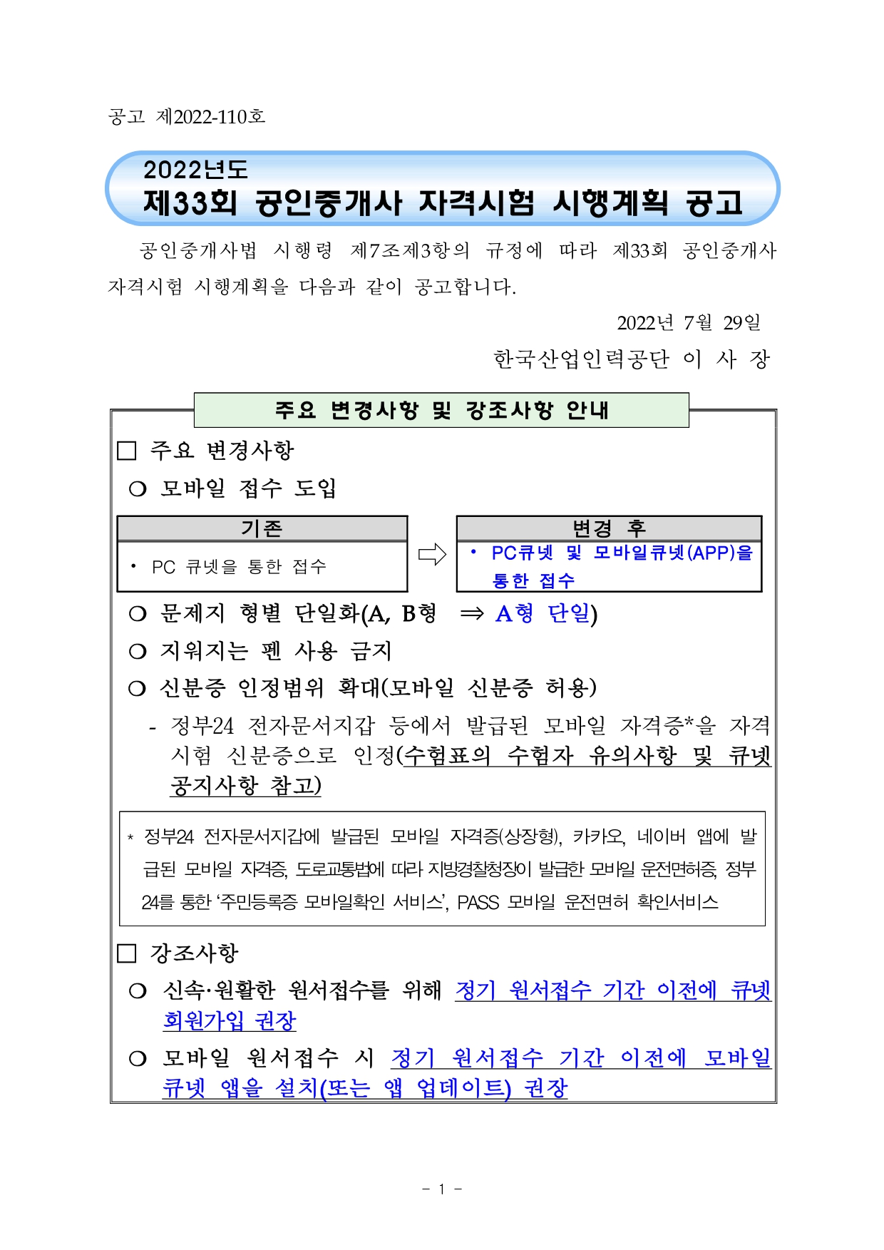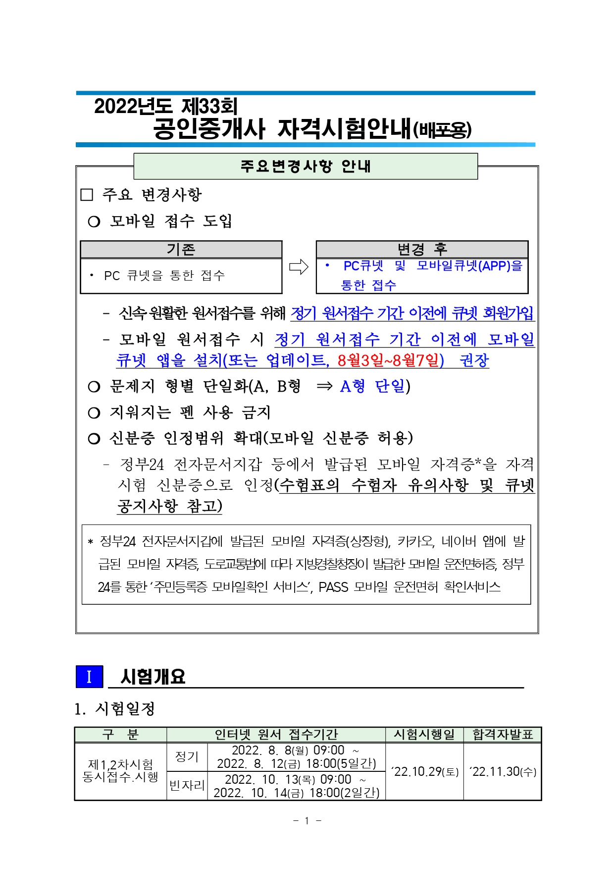 <2022년도 제33회 공인중개사 자격시험 안내자료>