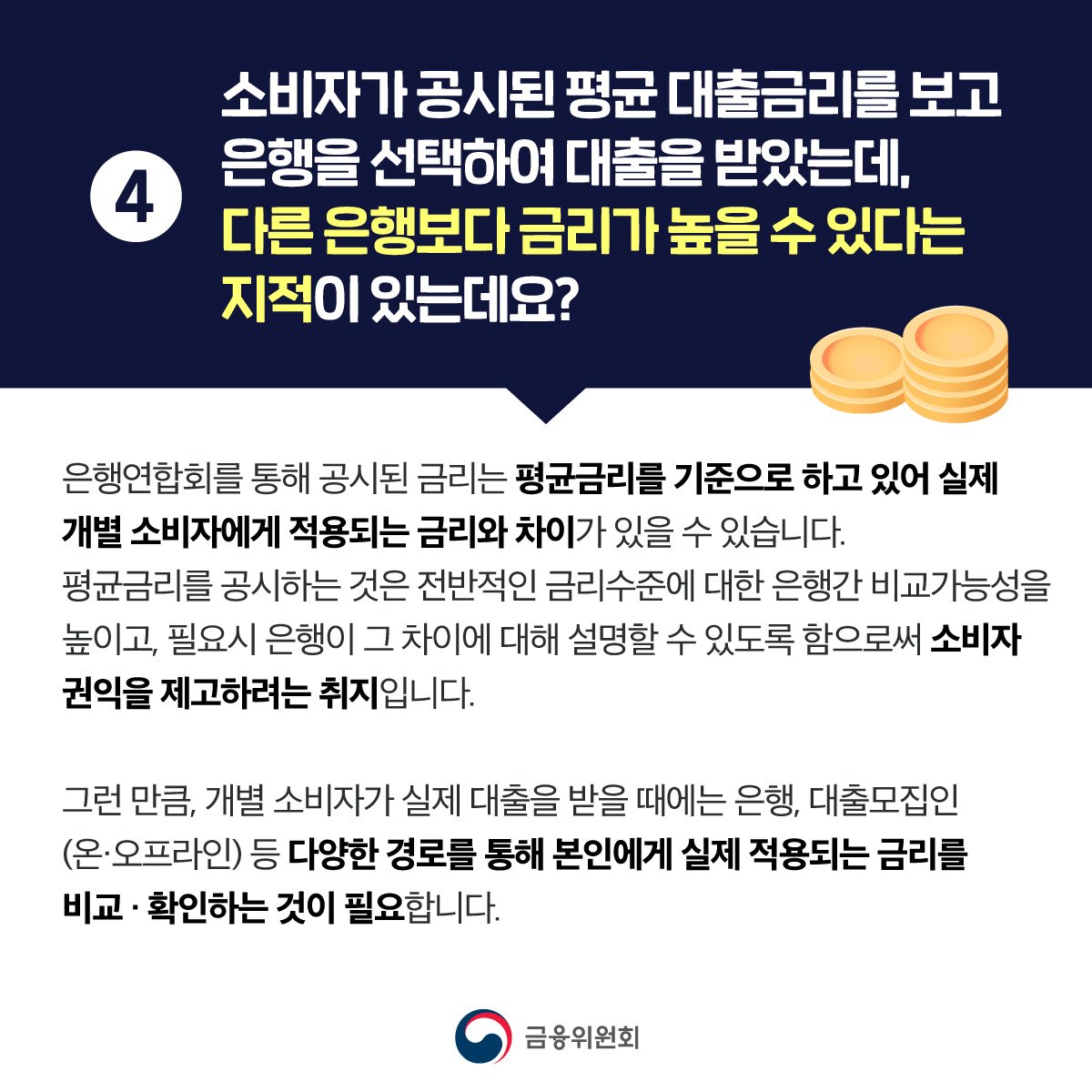 4. 소비자가 공시된 평균 대출금리를 보고 대출을 받았는데 다른 은행보다 금리가 높을 수도 있나요?
