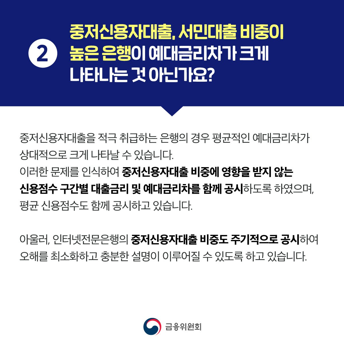 2. 중저신용자대출, 서민대출 비중이 높은 은행이 예대금리차가 크게 나타나는 것 아닌가요?