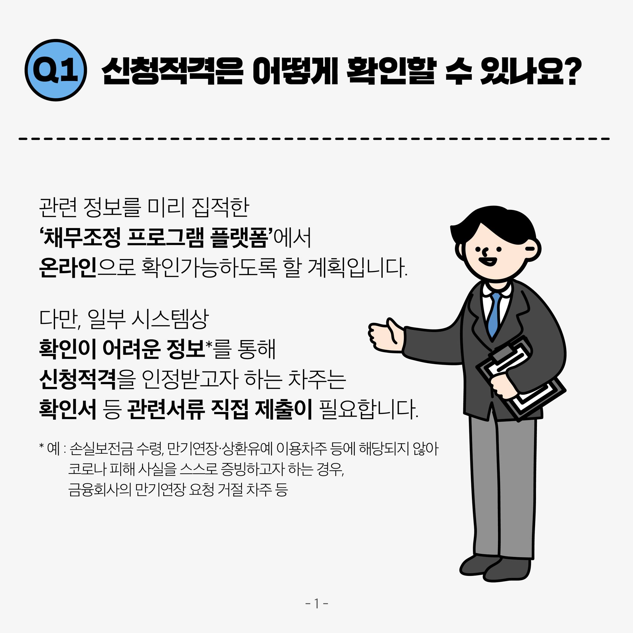 ✔ 원리금감면을 노리고 무리한 대출을 받거나 고의적으로 연체하는 등 도덕적 해이 문제가 발생할 소지는 없는가?