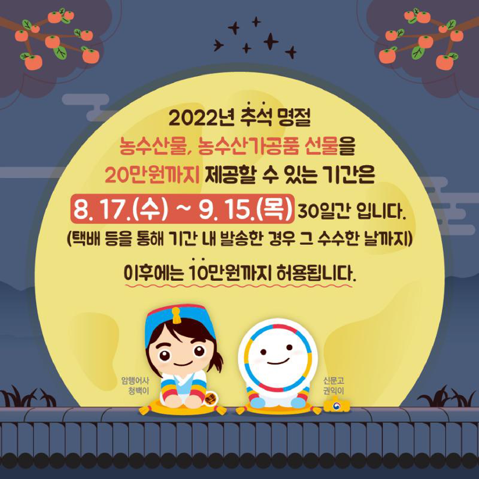 2022년 추석 명절 청탁금지법을 알려드립니다.