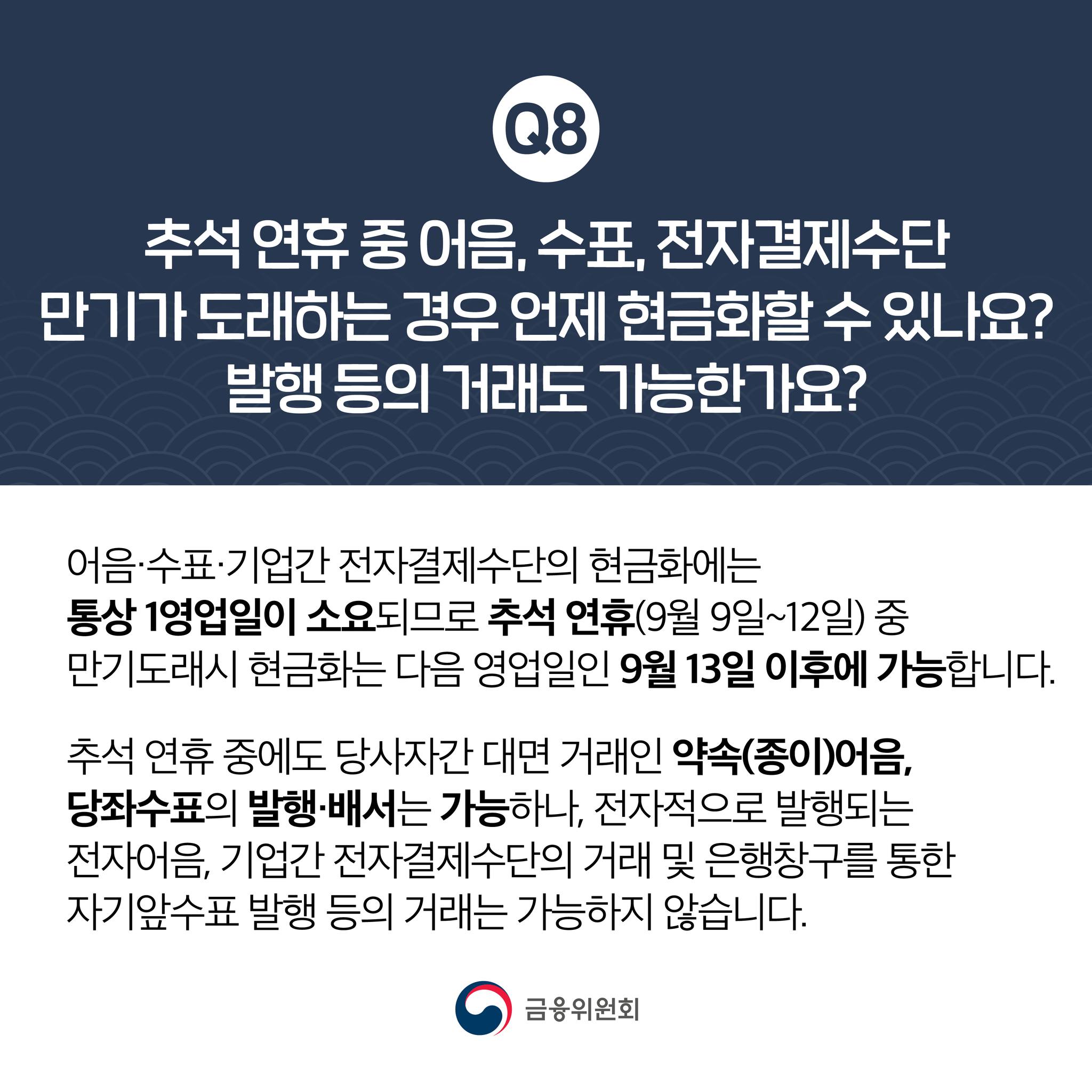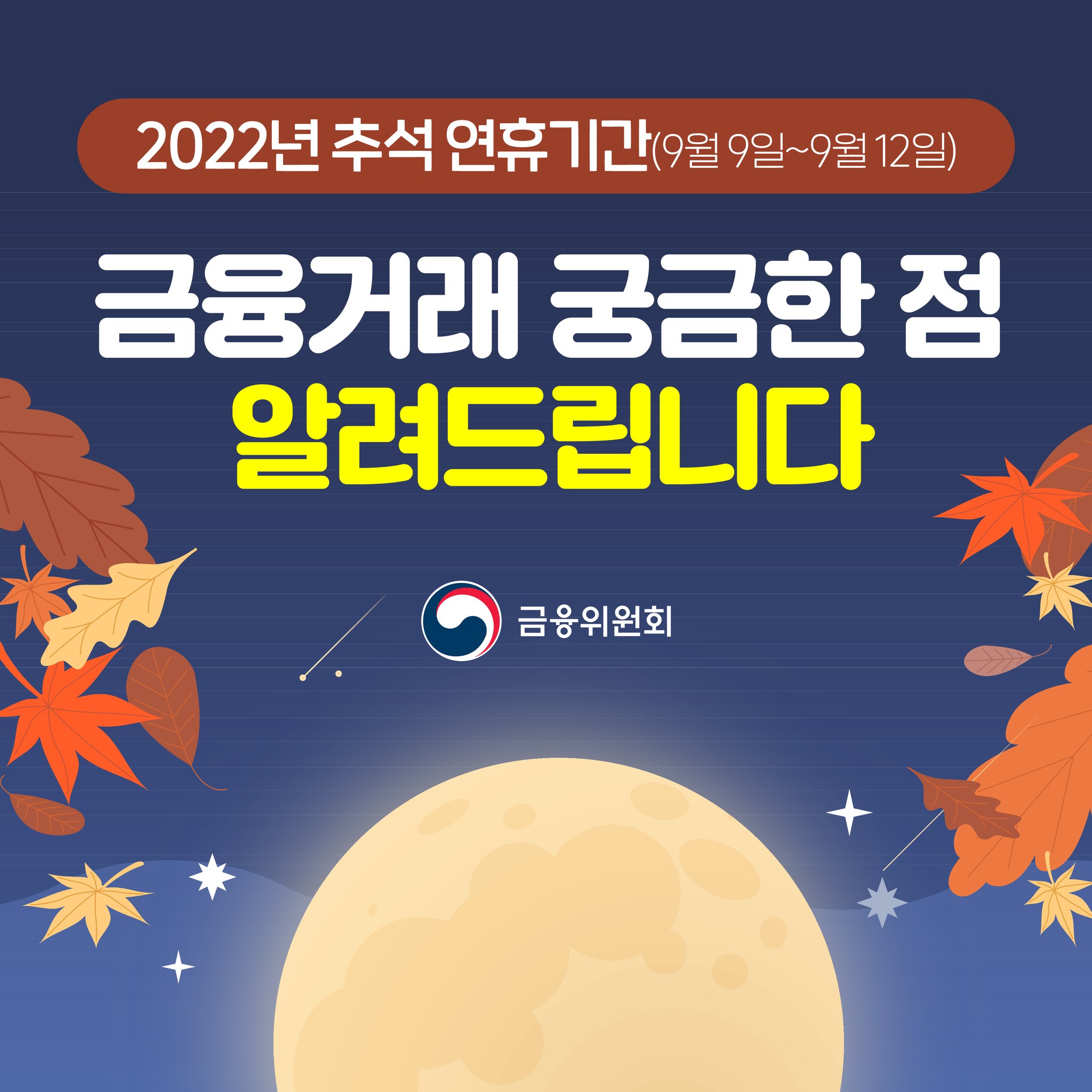 2022년 추석연휴기간 금융거래 안내입니다.