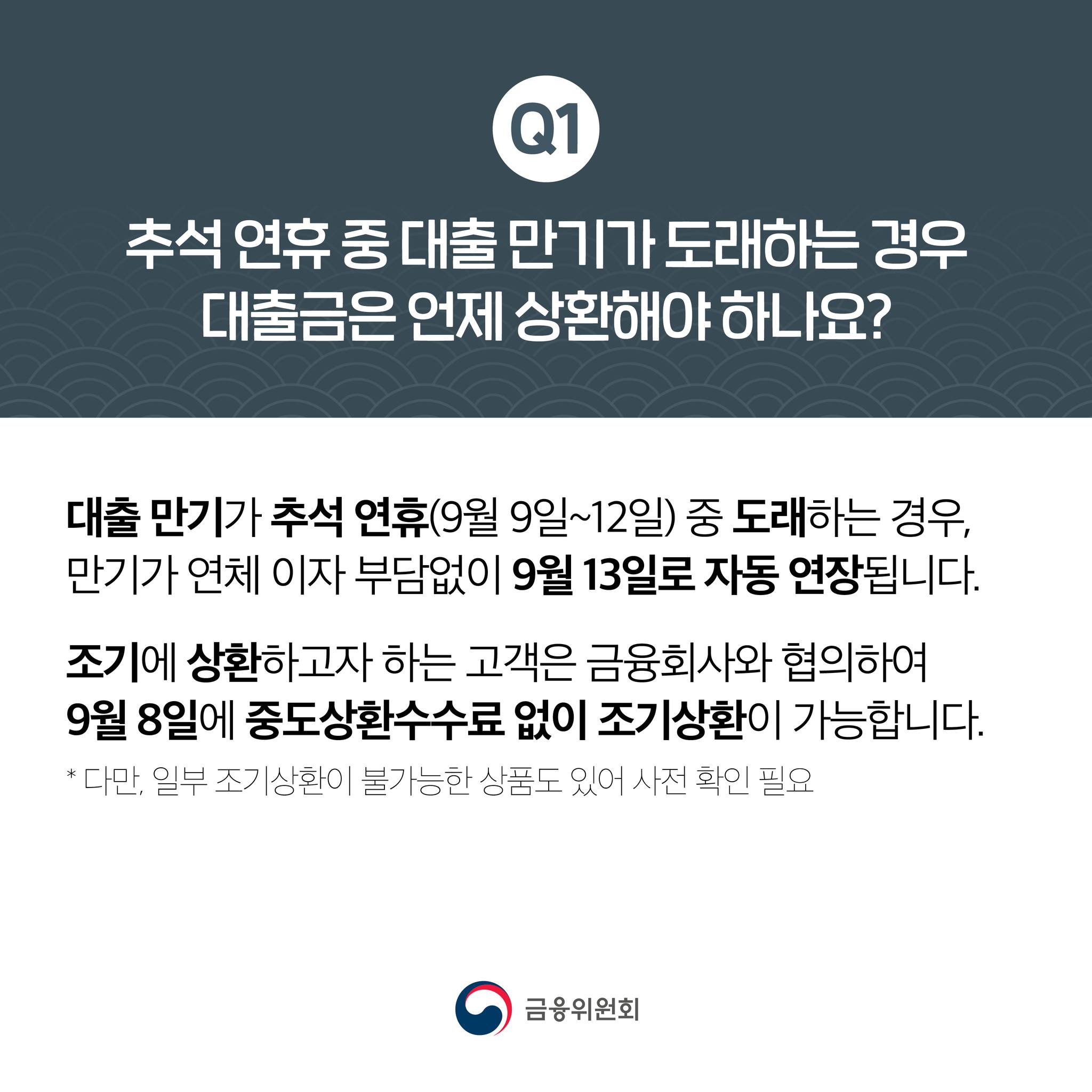 추석연휴중 대출만기가 도래하는 경우는 대출금은 언제 상환해야할까요?