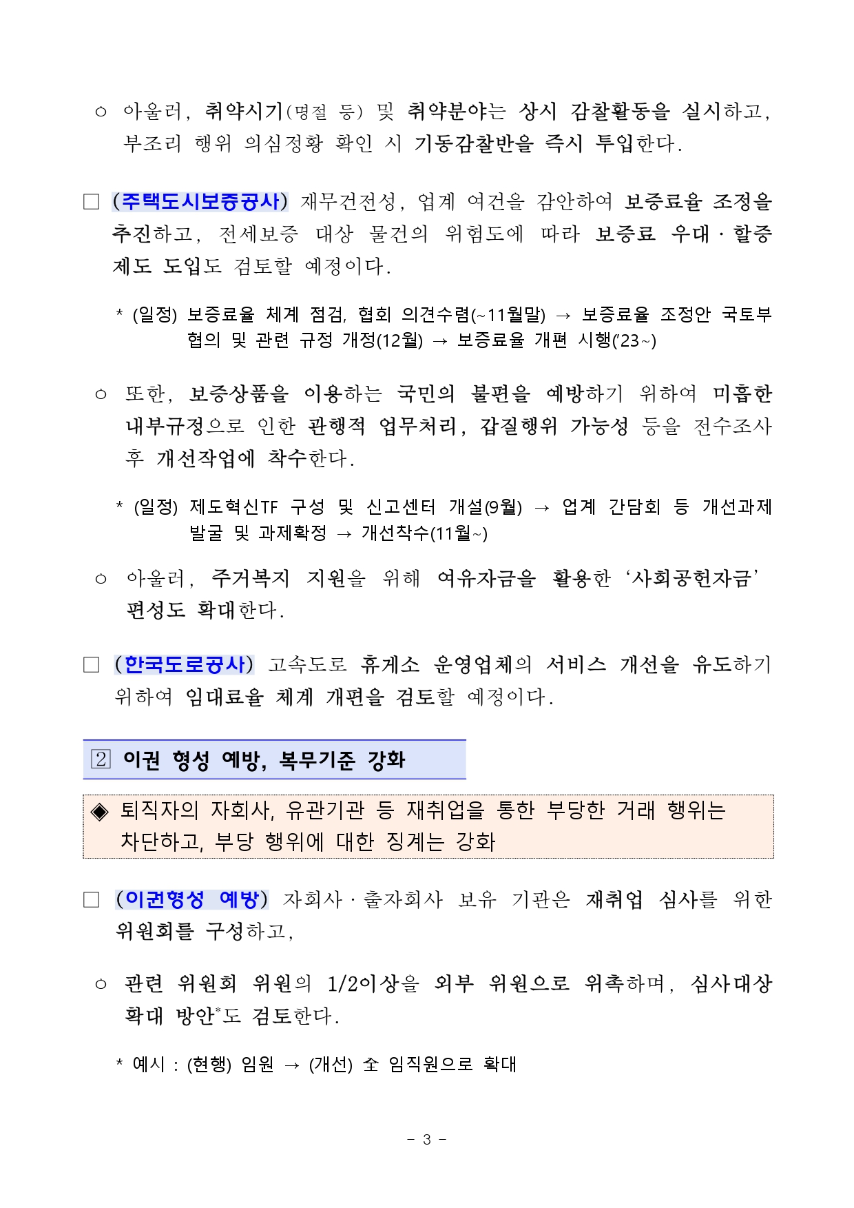 이번 혁신방안의 핵심은 공공기관이 설립 목적에 부합하는 업무를 공정하고 투명하게 시행하고, 국민 눈높이에 맞는 공적(公的) 기관으로 재탄생할 수 있도록 기반을 마련하는 것이다.