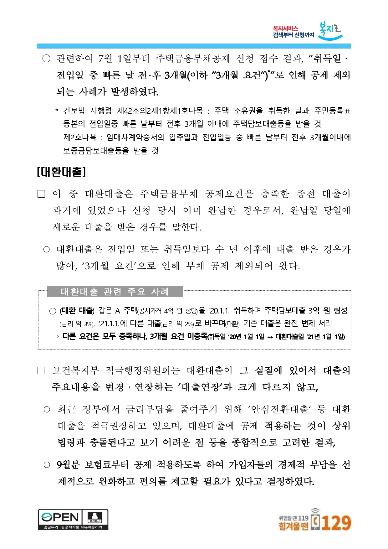 이로 인해, 대환 대출을 이유로 주택금융부채공제 대상에서 제외된자*도 9월분 재산보험료부터 부채 공제 적용받을 수 있게 되었다.