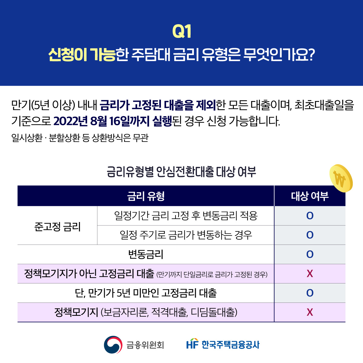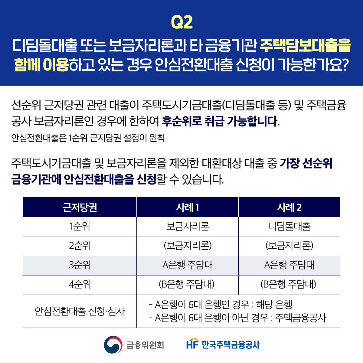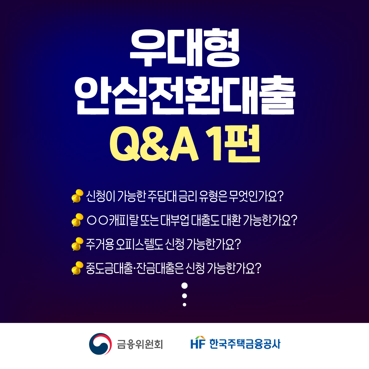 안심전환대출은 서민 · 실수요자가 보유한 변동금리 · 준고정금리(혼합형) 주택담보대출을 저금리의 장기 · 고정금리 · 분할상환 상품으로 갈아탈 수 있는 상품이다.