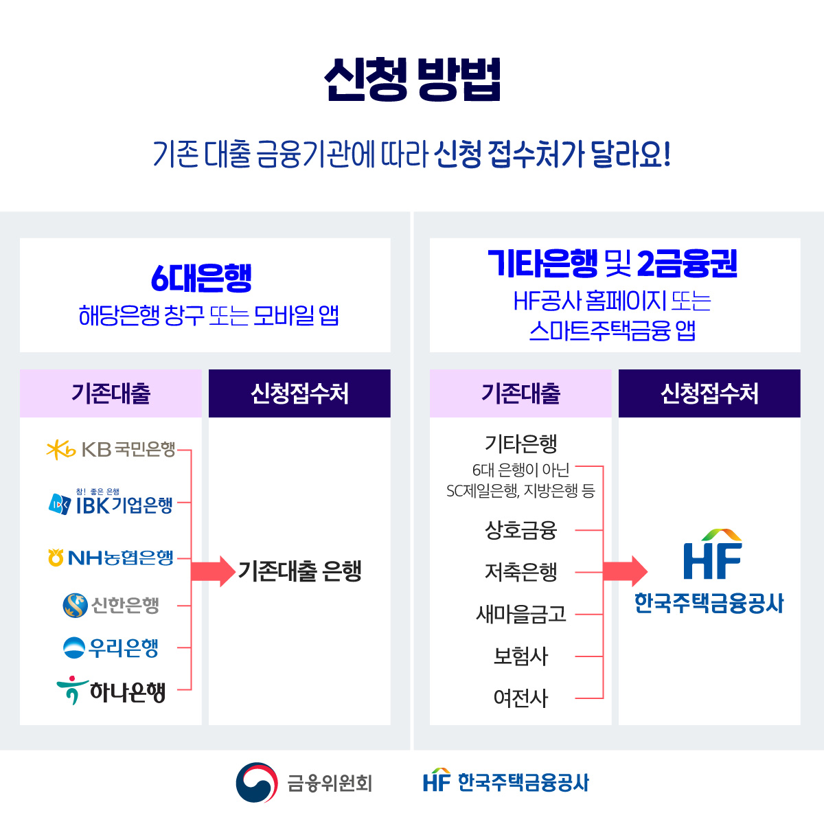 우대형 안심전환대출의 지원 대상 및 신청일정과 방법은 다음과 같다.