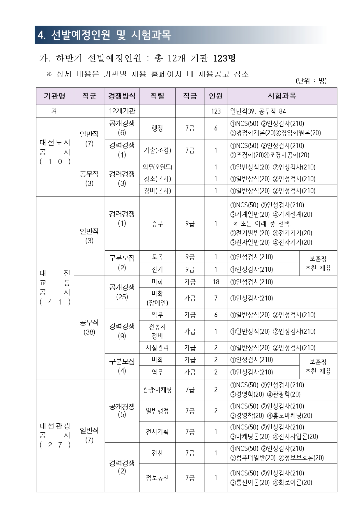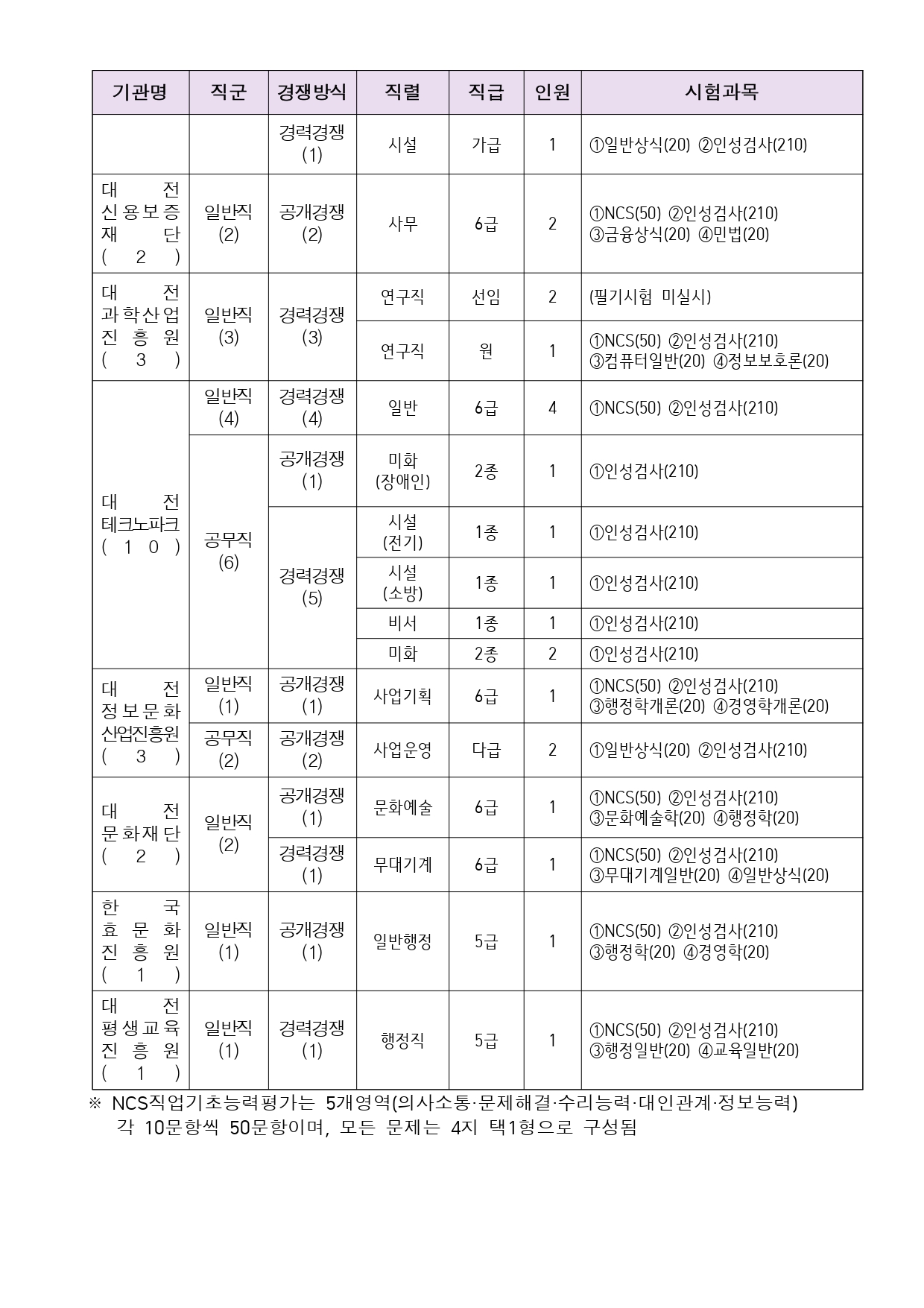 2022년 하반기 대전광역시 공공기관 직원 통합채용 공고입니다.