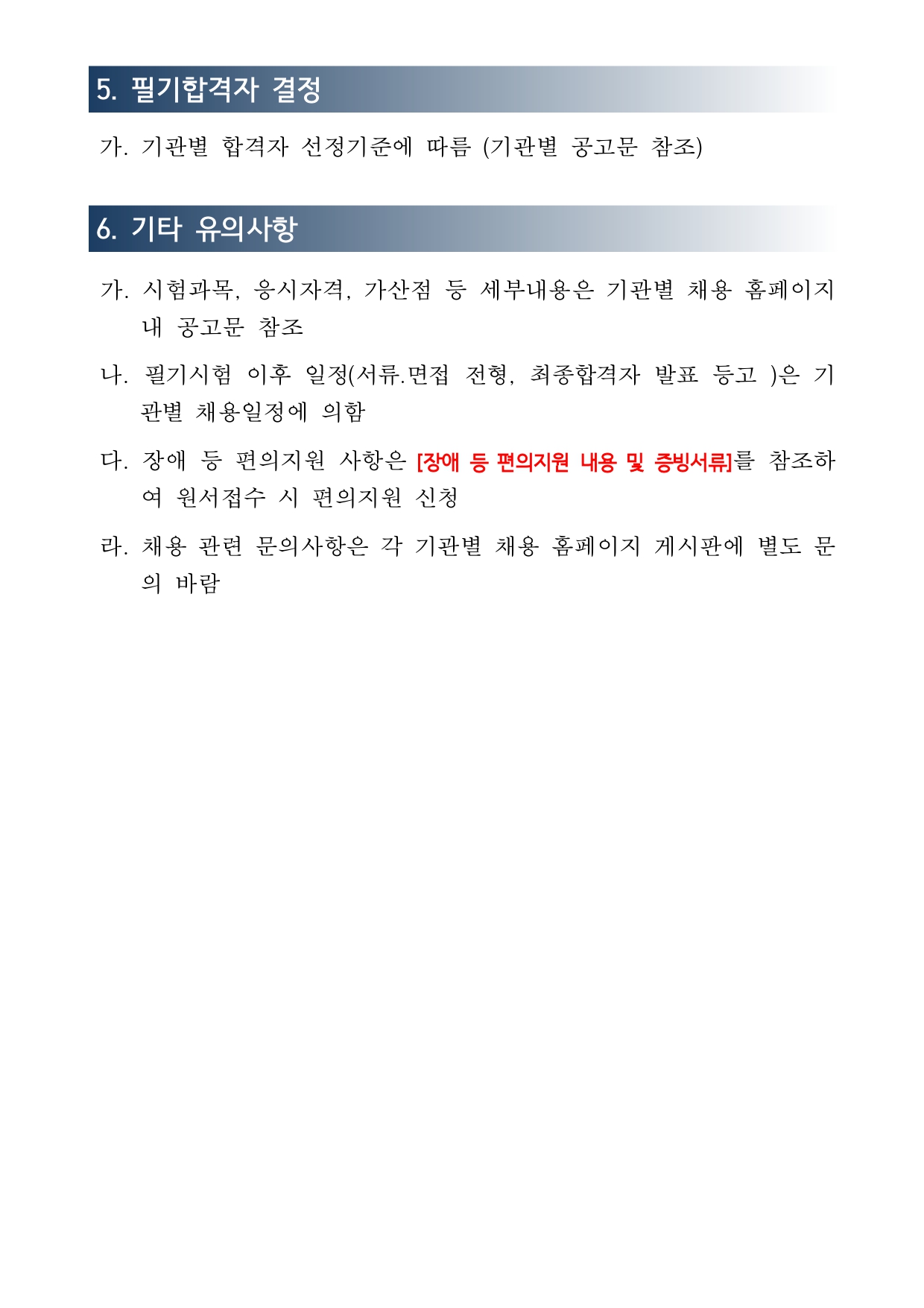 ※ 상기 모든 전형은 코로나바이러스감염증-19 확산 추이 등에 따라 변경될 수 있으며, 필기시험 장소 안내 시(10.27.목) 코로나19 관련사항 포함 세부내용 추가 공지