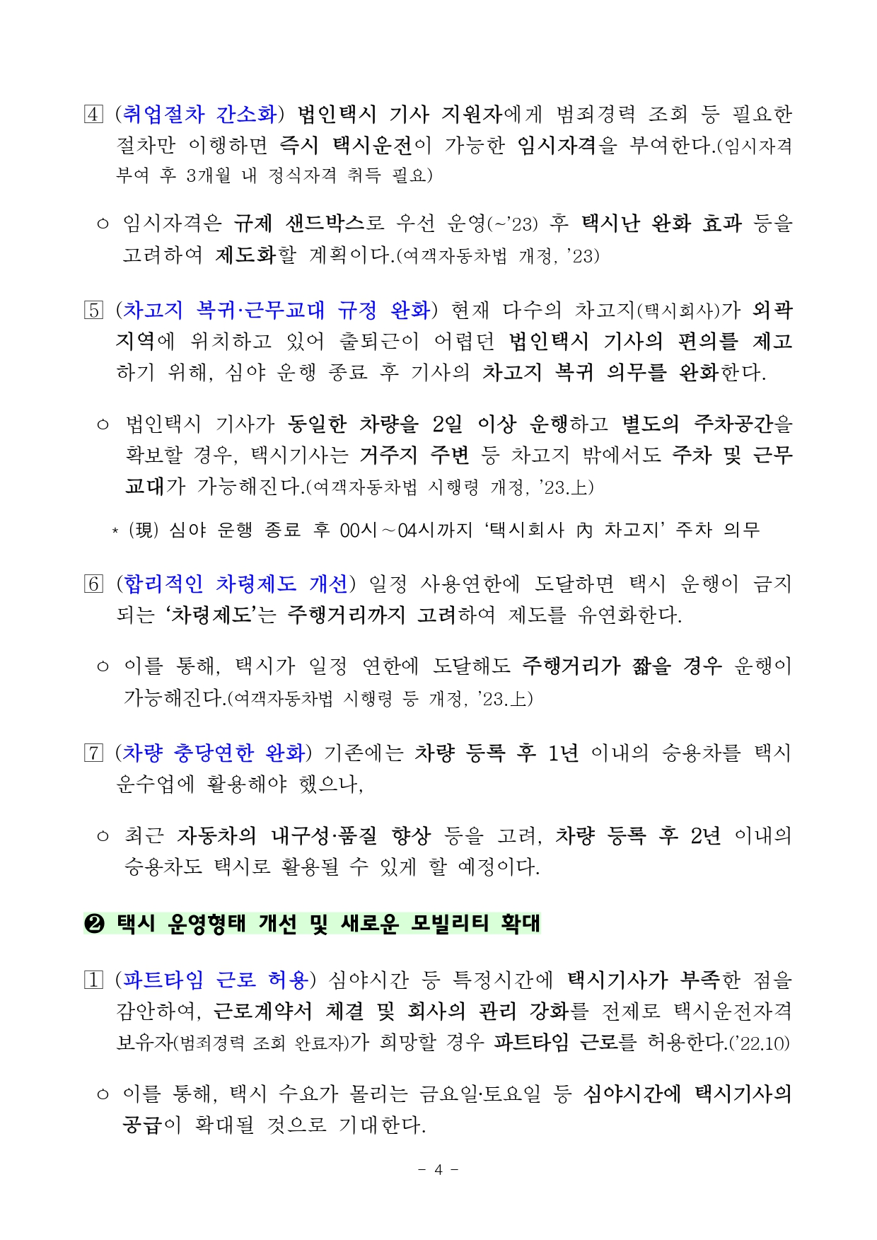 · 법인택시 인력난 완화를 위해 파트타임 근로계약 허용