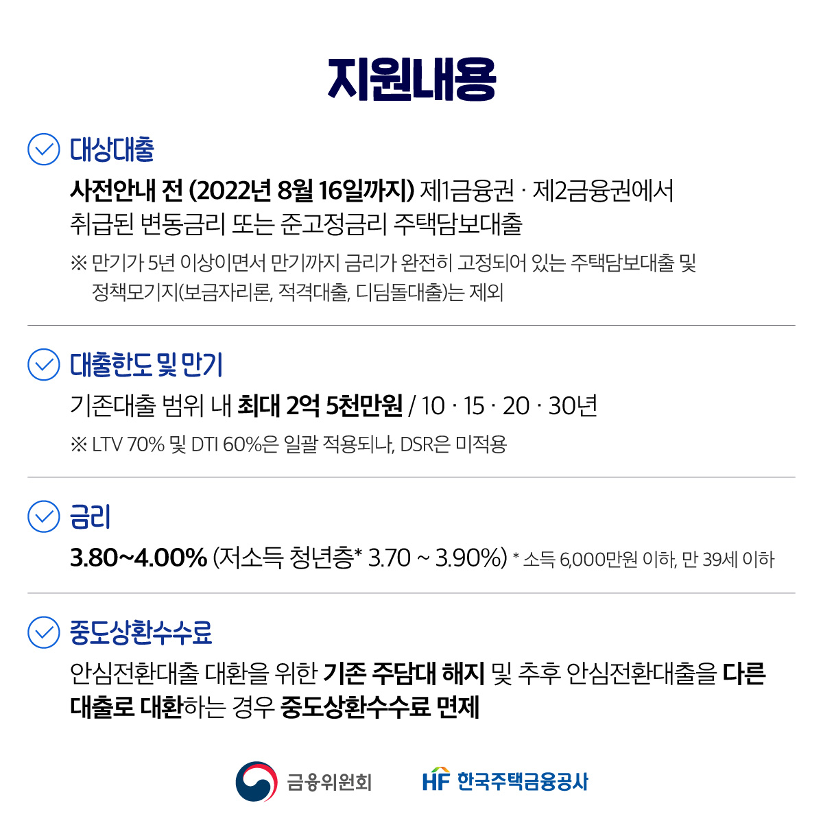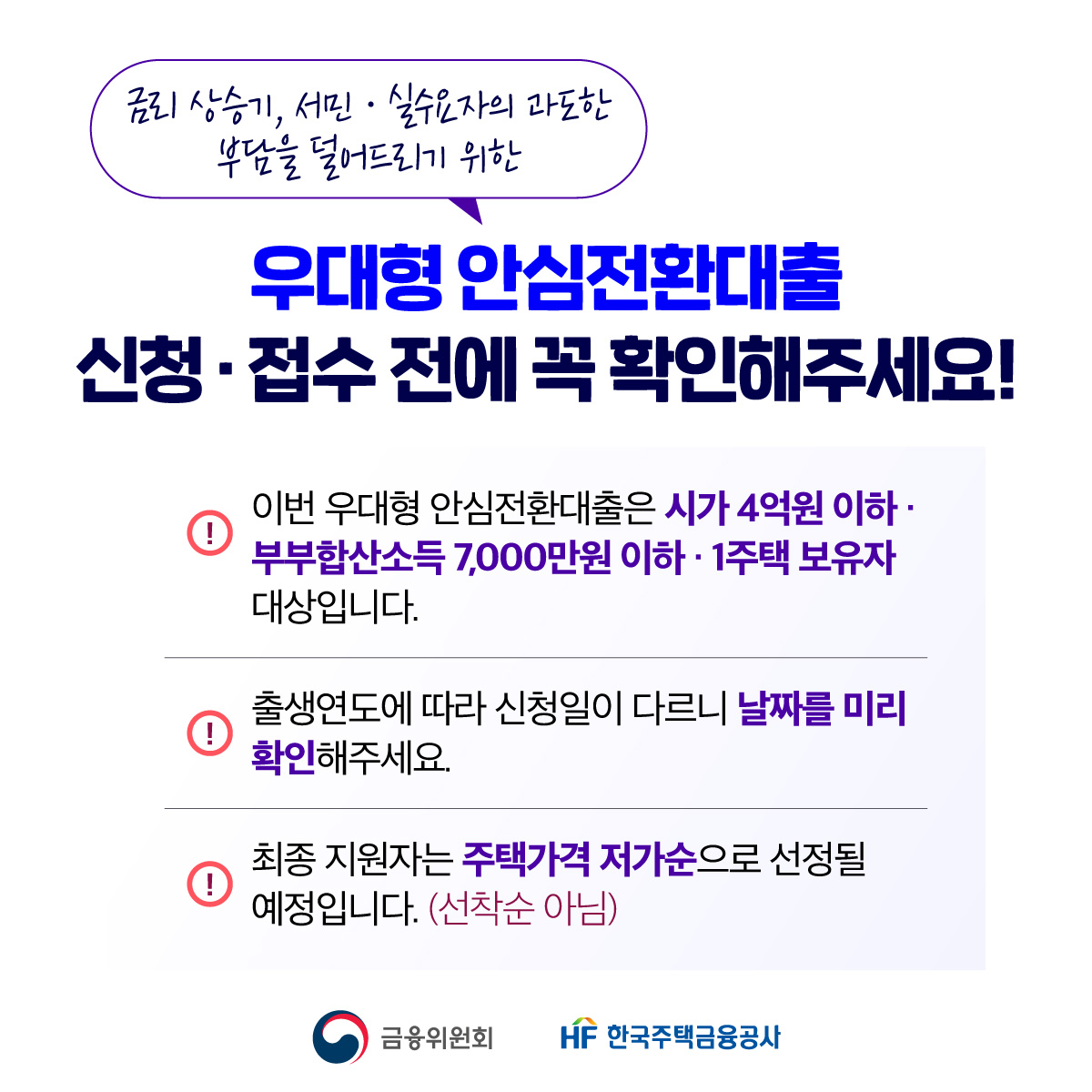 우대형 안심전환대출의 지원 대상 및 신청일정과 방법까지 꼭 확인하시길!