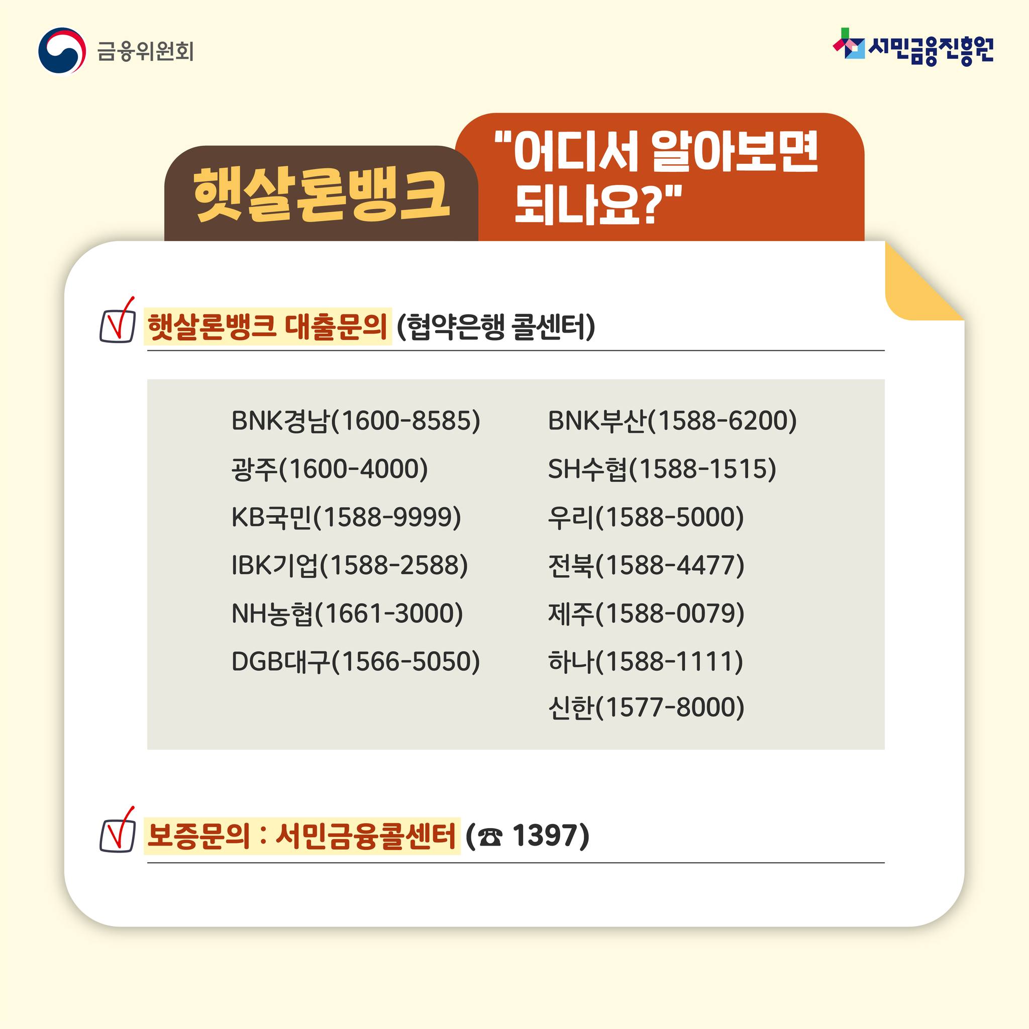 서민금융콜센터 ☎️ 1397