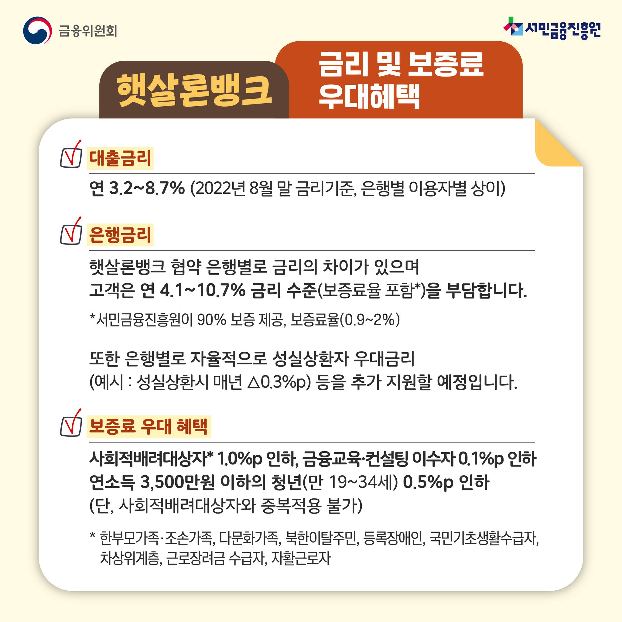 햇살론뱅크는 정책서민금융상품을 이용했던 저신용·저소득 서민이 부채 또는 신용도가 개선된 경우